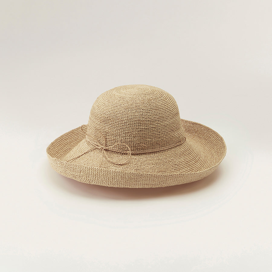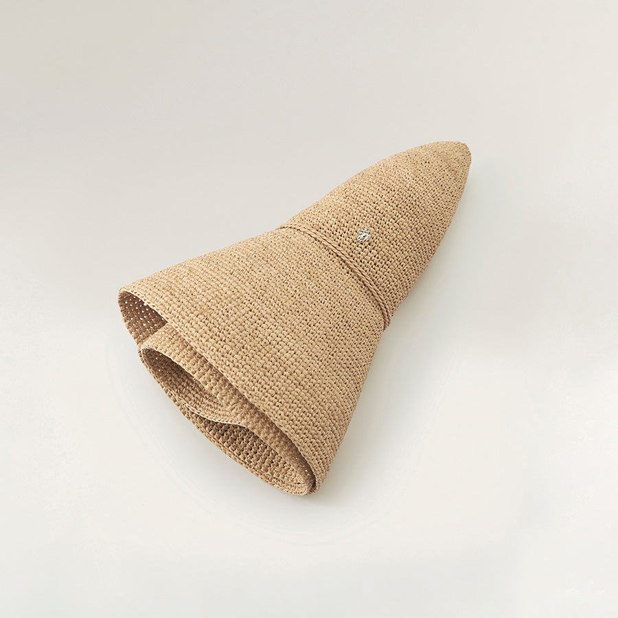 - Adjustable fit with hand-rolled raffia string