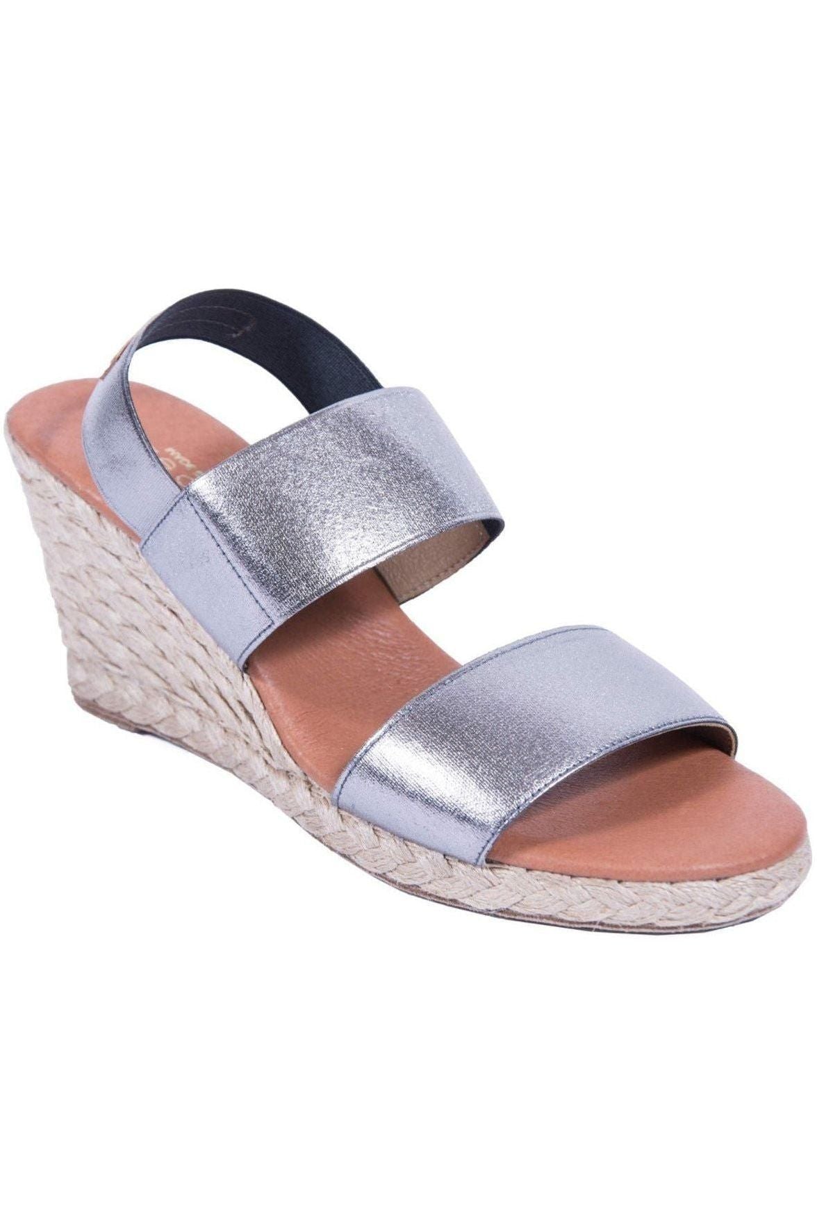 André Assous Allison Stretch-Strap Wedge Espadrilles | Pewter