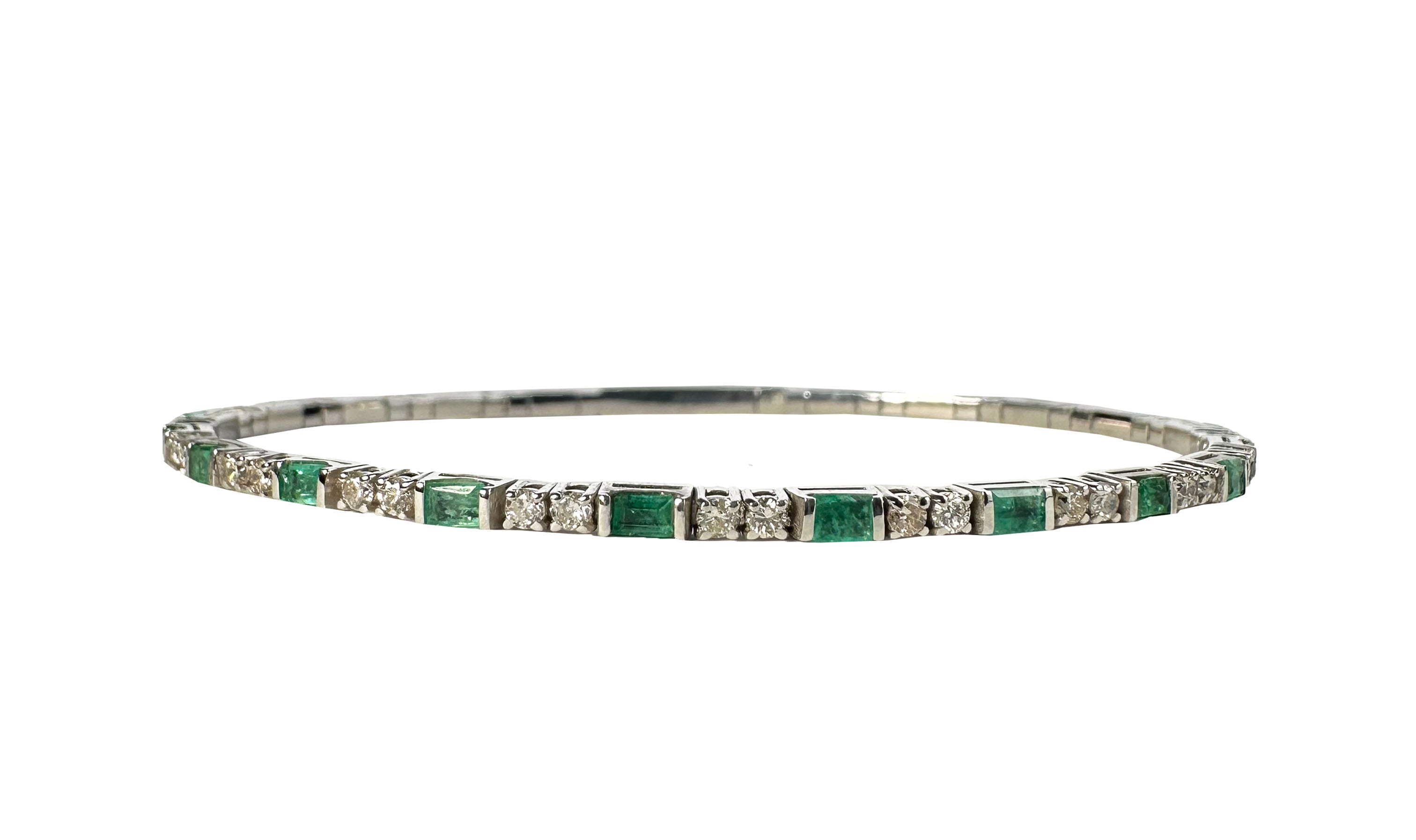 FC Creations Bracelet 18K Gold Emerald & Diamond Flexible Bangle CTTW 2.5 Carat | White Gold