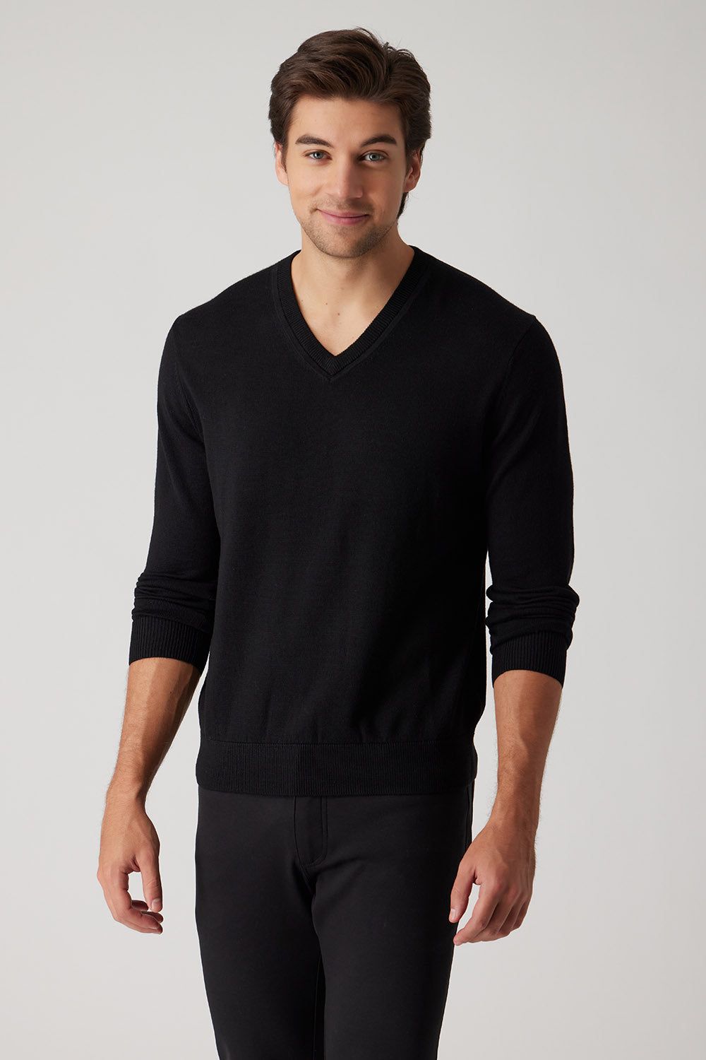 Raffi The Bronson Extra Fine Merino Wool V-Neck HWC19391 | Black