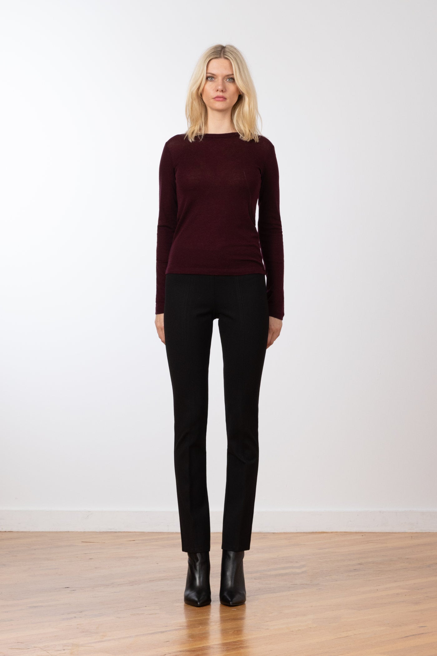 Discover effortless sophistication with the Avenue Montaigne Jet Set Flare Pull-On Pant Designed in classic black and crafted from premium 4-way stretch fabric, these pants deliver unmatched comfort and a sleek, tailored look. The elastic waistband ensures a perfect fit, while the slim leg with front seam detail and elegant flared hem create a flattering silhouette. Ideal for travel or chic everyday wear, this versatile piece pairs beautifully with heels, sneakers, loafers, or boots for a polished finish. Elevate your wardrobe with a timeless essential that blends style, comfort, and versatility.