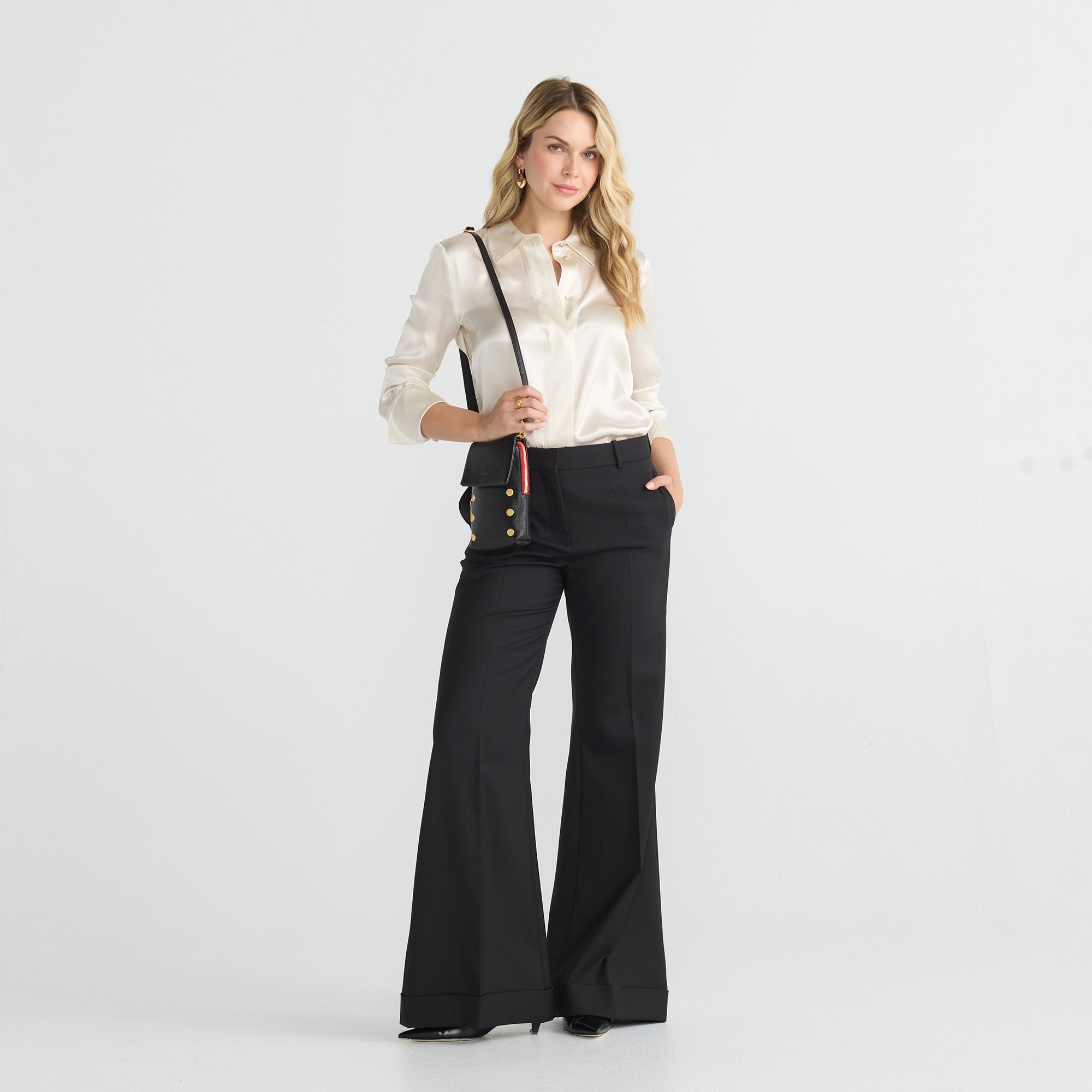 Meet the epitome of chic convenience: Hammitt's VIP Mobile is the latest addition to their beloved VIP family. Designed for "on-the-go" trips, this crossbody fuses both style and functionality. Its compact form packs in multiple iconic details, including the VIP's classic slanted flap, front-facing rivets and trusty cellphone pocket. Its interior features 3 credit slots and a flat pocket, so you can travel light - in lieu of a wallet!