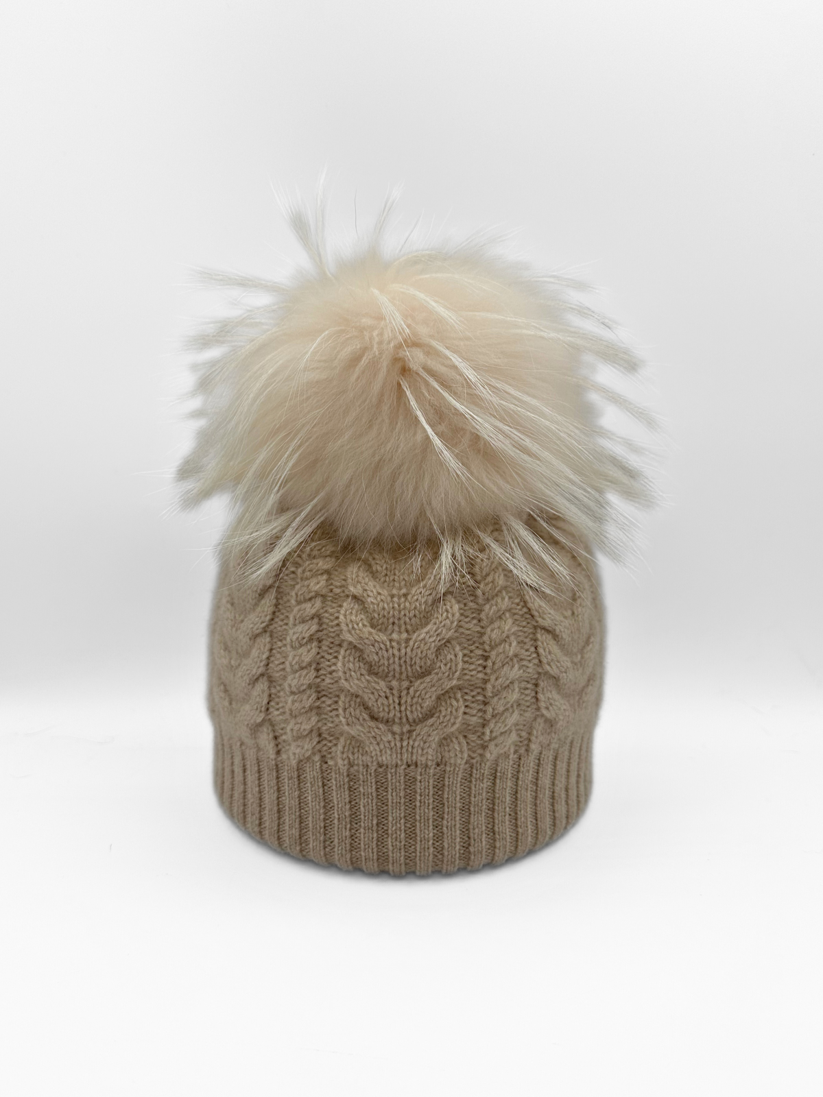 Linda Richards Cashmere Cable Pom-pom Hat HA-96 | Beige