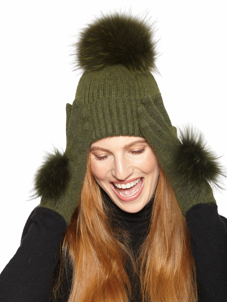 Model image is Olive HA-62 & GL-04 Pom Pom Gloves sold separately