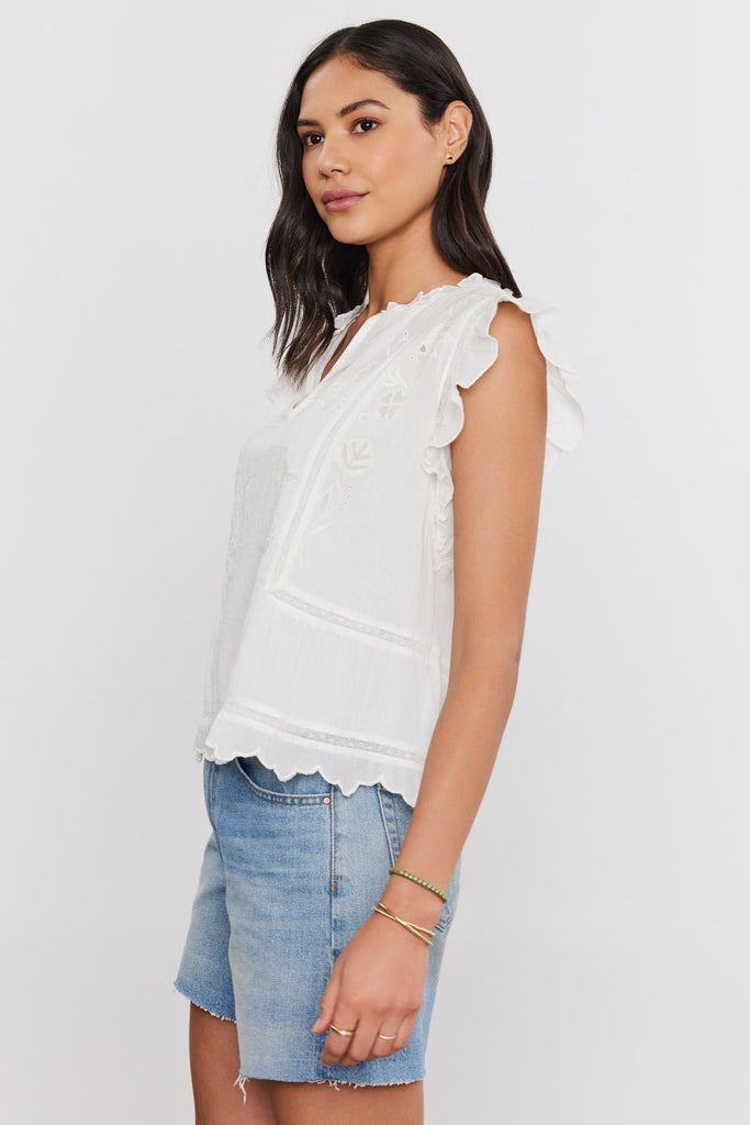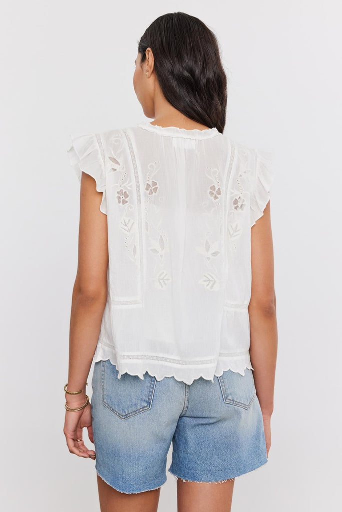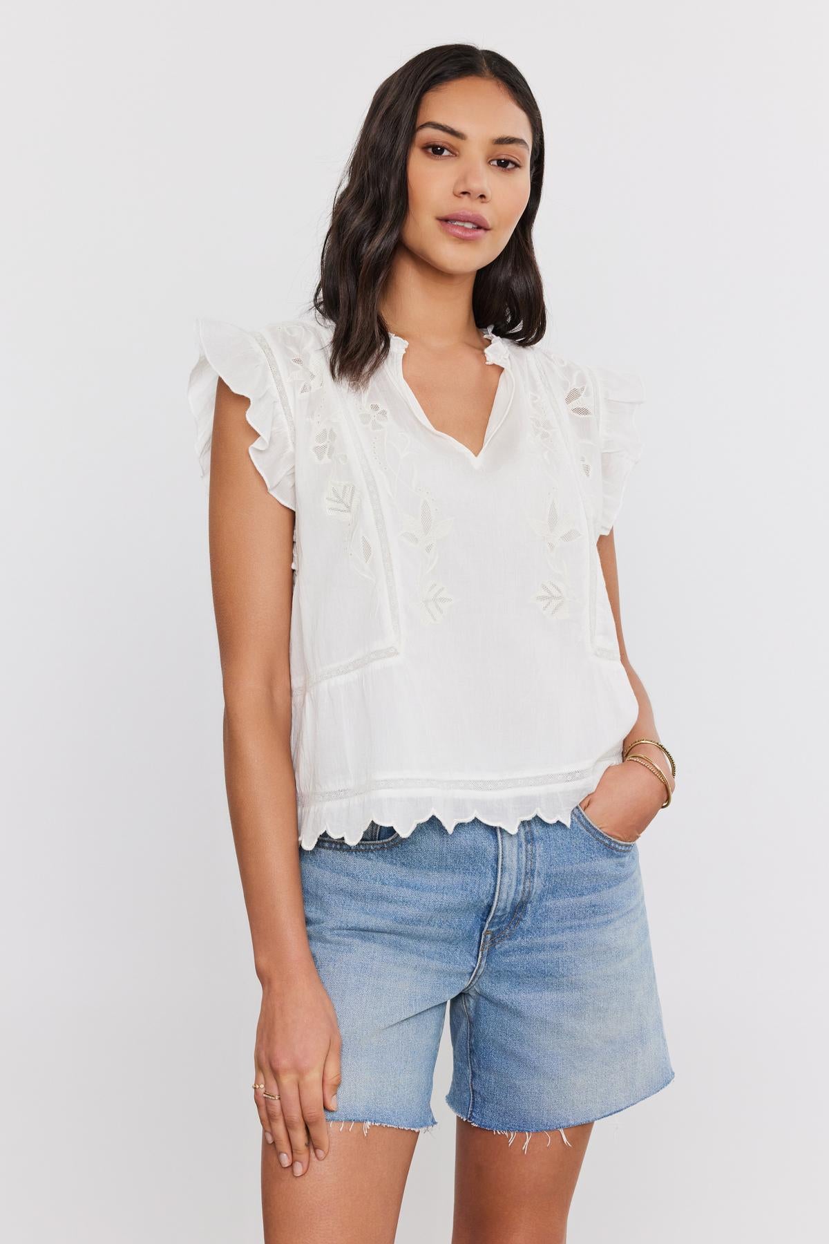 Velvet by Graham & Spencer Charlene 06 Embroidered Lace Blouse | Off White | Clearance Final Sale | Offered Online Only