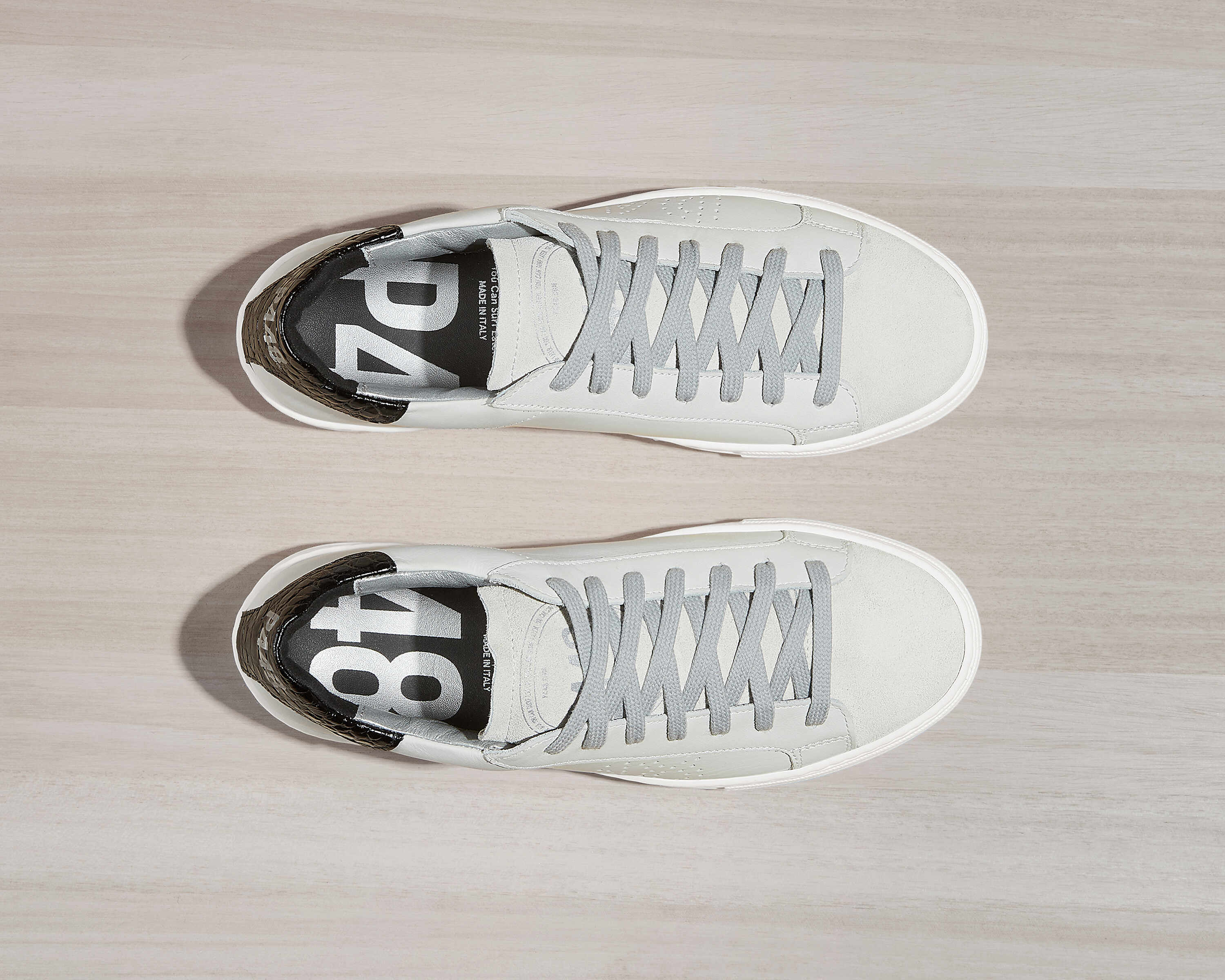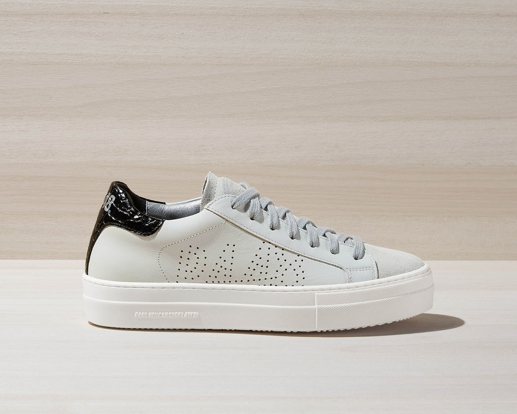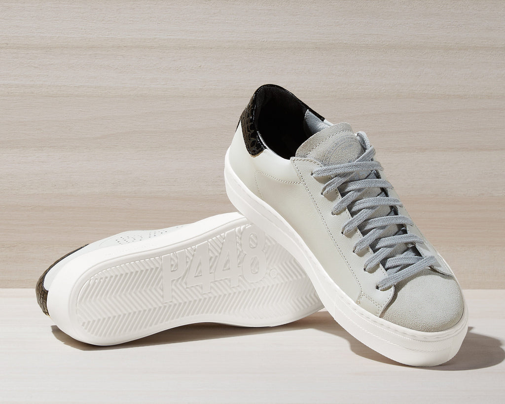 The P448 Thea Platform Sneakers are your perfect addition to any outfit. Combining white leather with black croco-embossed leather heel tap, these sneakers will instantly elevate your look. Sleek and stylish, these shoes will make a statement every time you step out.