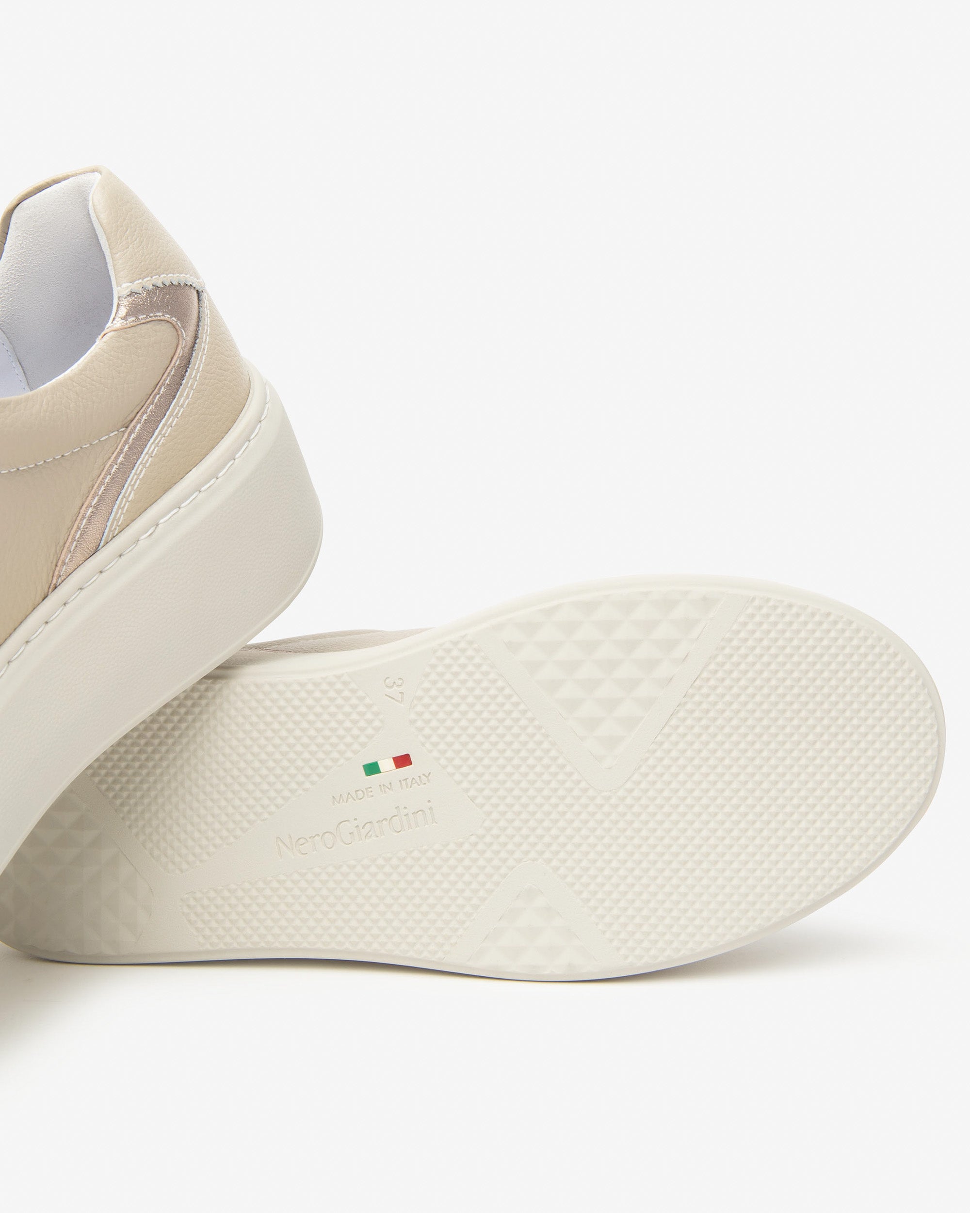 NeroGiardini Leather Zipper Platform Sneakers I514212D412 | Beige