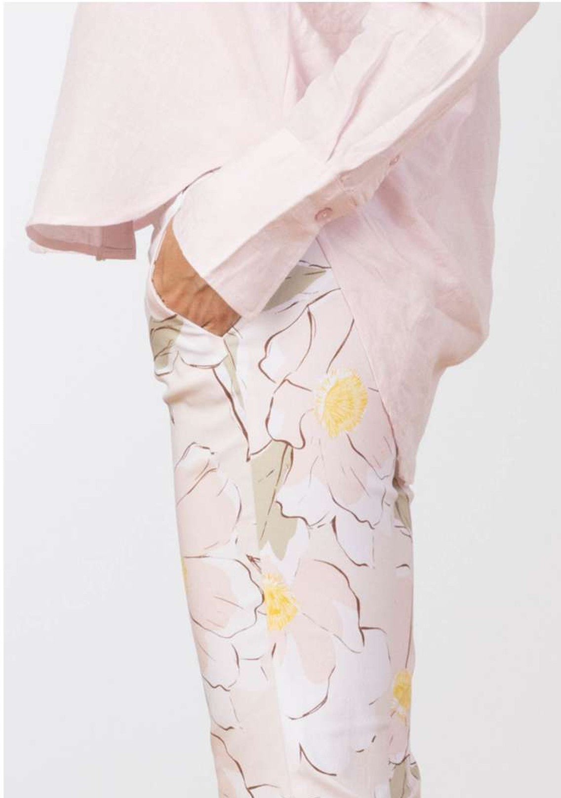 Crafted in the delicate Petal fabric, this style showcases a soft, airy floral print in fresh spring hues. The fabric is exceptionally light, breathable, and comfortable—ideal for seasonal dressing and perfect for both casual and dressier occasions. Because of the fabric’s gentle structure and stretch, we recommend taking one size up for the best fit.