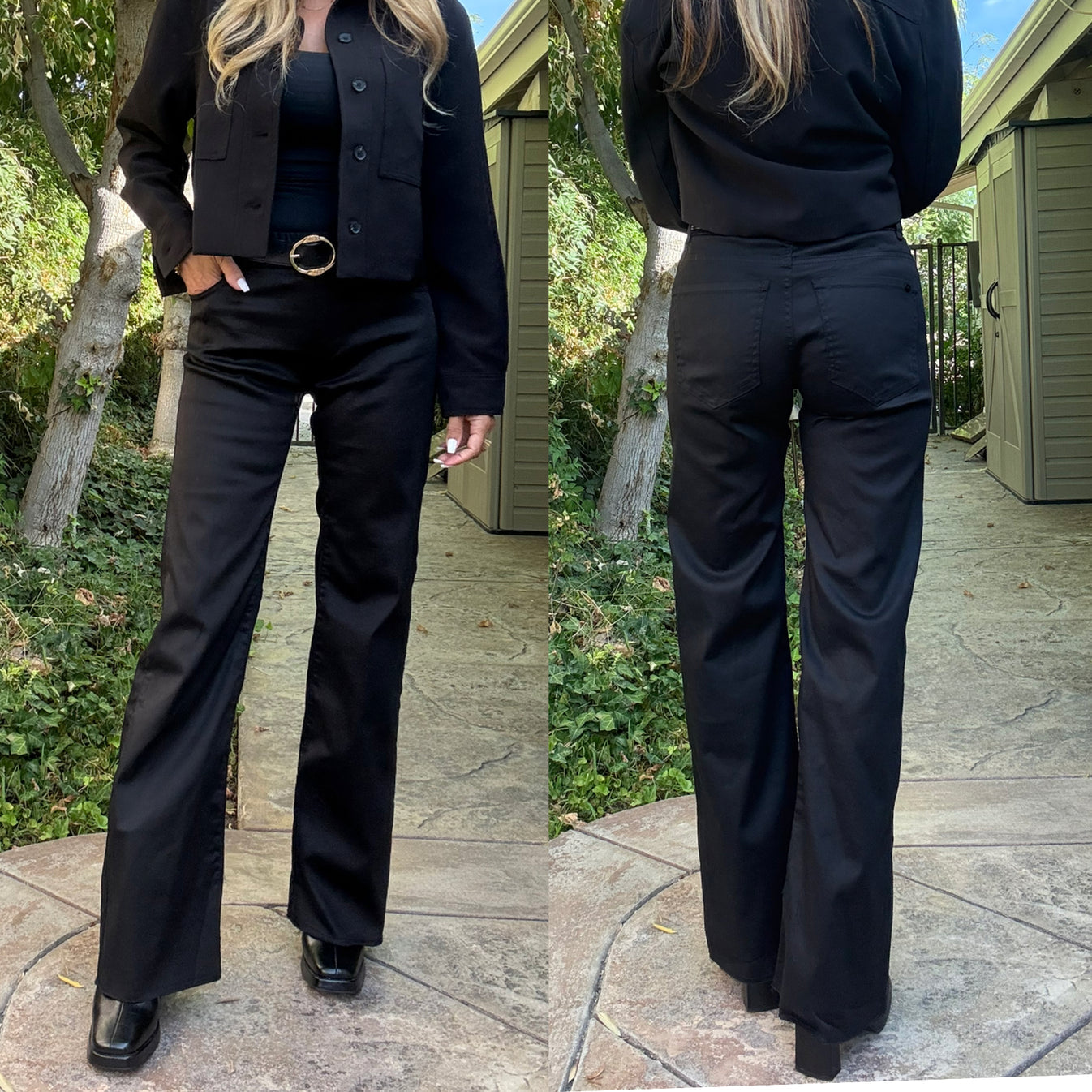 Discover the ultimate blend of comfort and style with the Amanda Long Black pull on pants by Bevy Flog, This best selling pull on silhouette features an elastic waistband, belt loops, and wide leg detail. Crafted from a premium cotton and Lycra blend, offering a soft, stretchy fit that moves with you.