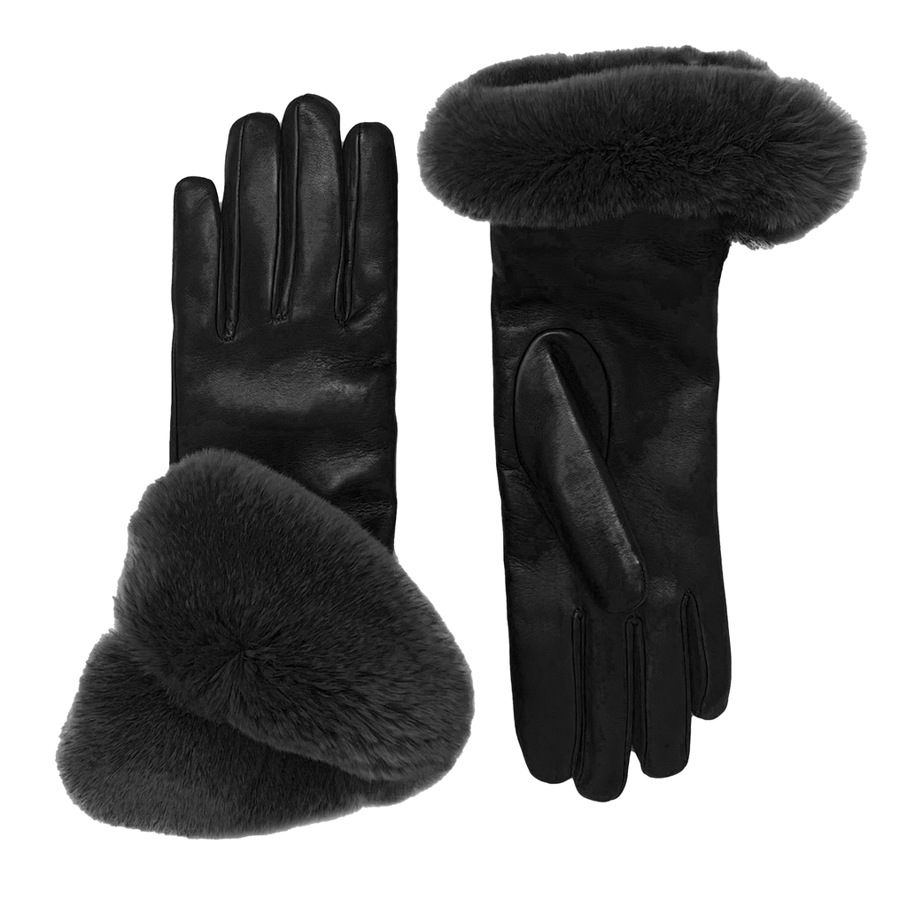 Bruno Carlo Cashmere Lined Lambskin Leather Gloves REX30 | Rex Fur/Nero (Black)