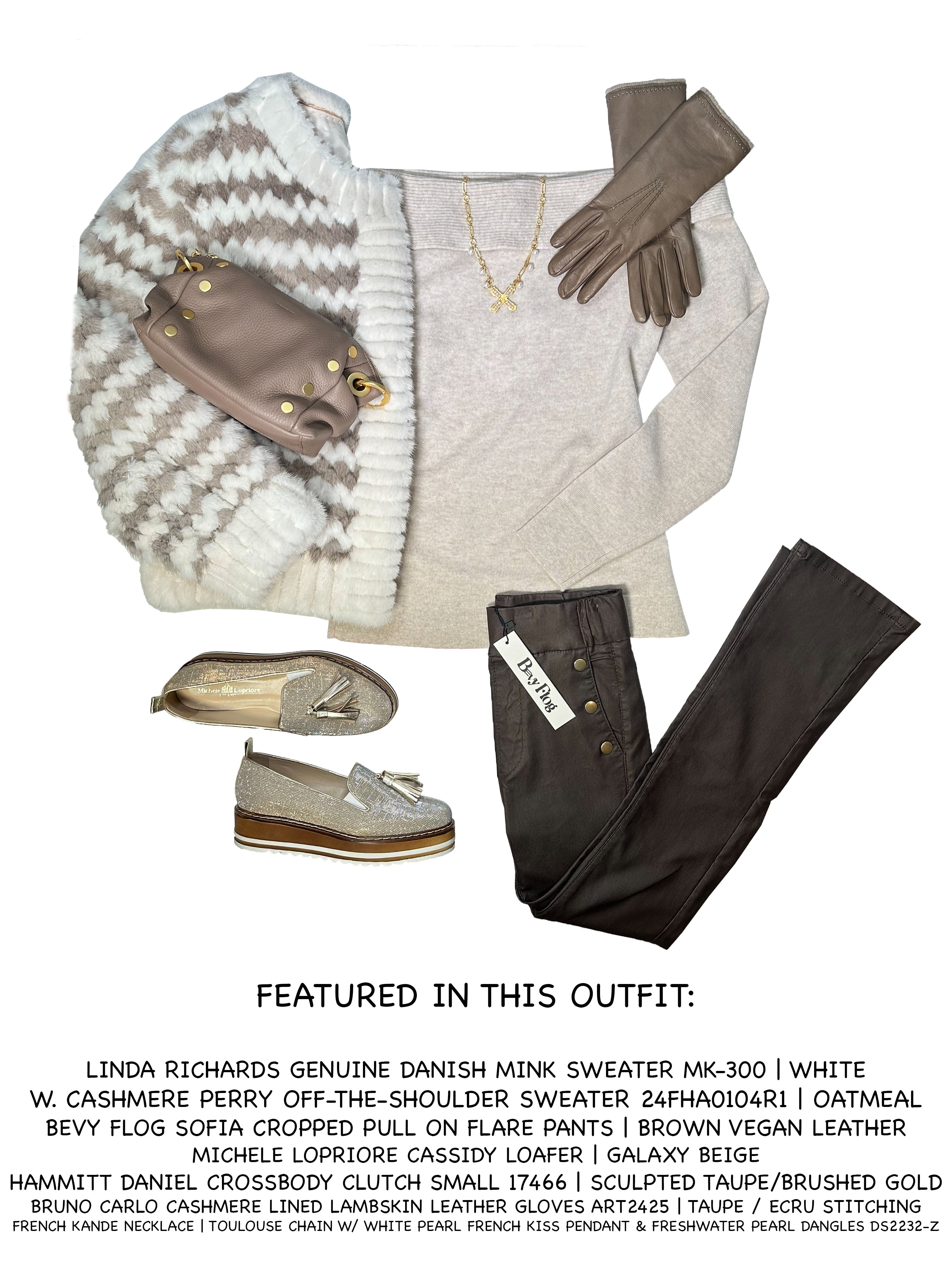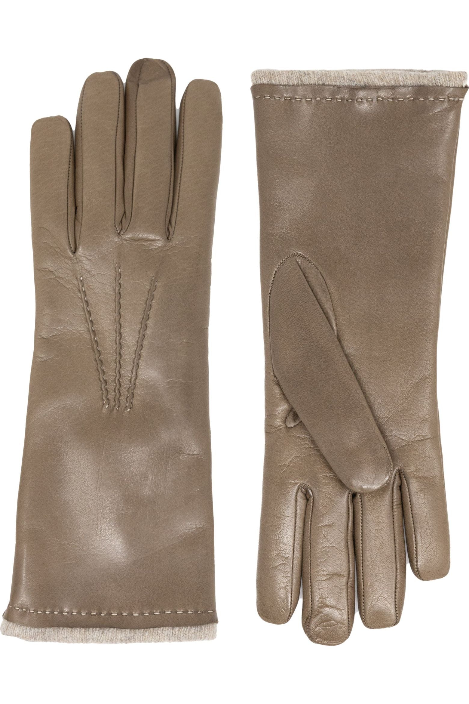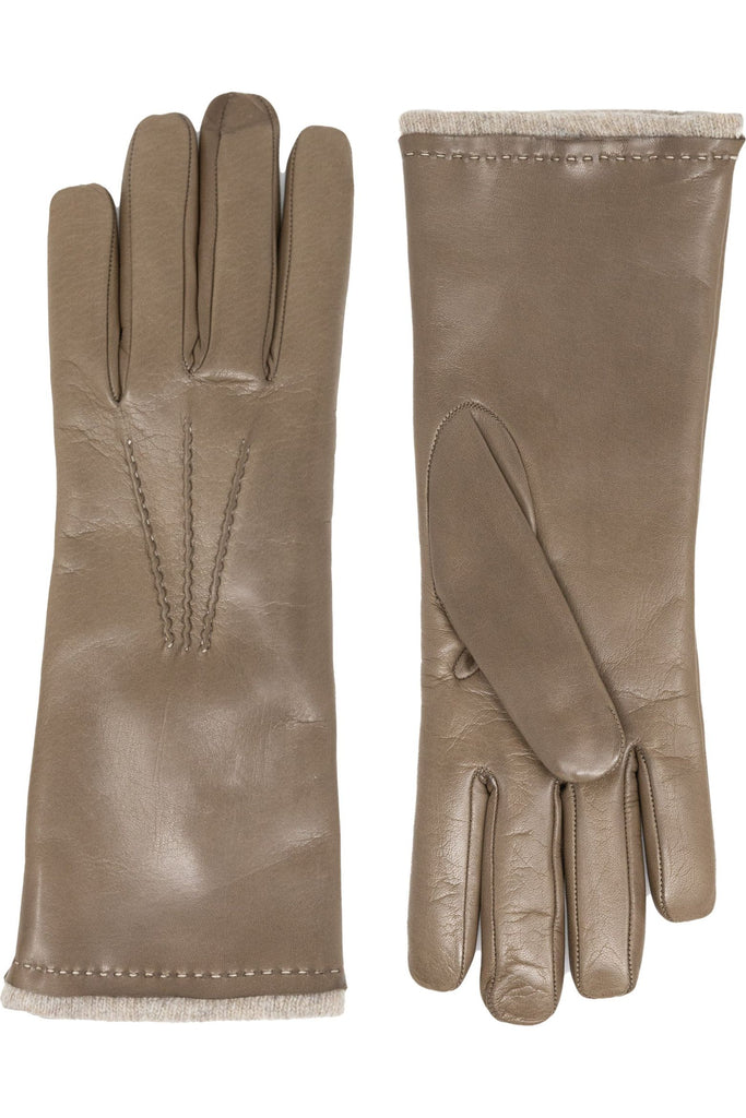 Bruno Carlo Cashmere Lined Lambskin Leather Gloves ART2425 | Taupe / Ecru Stitching
