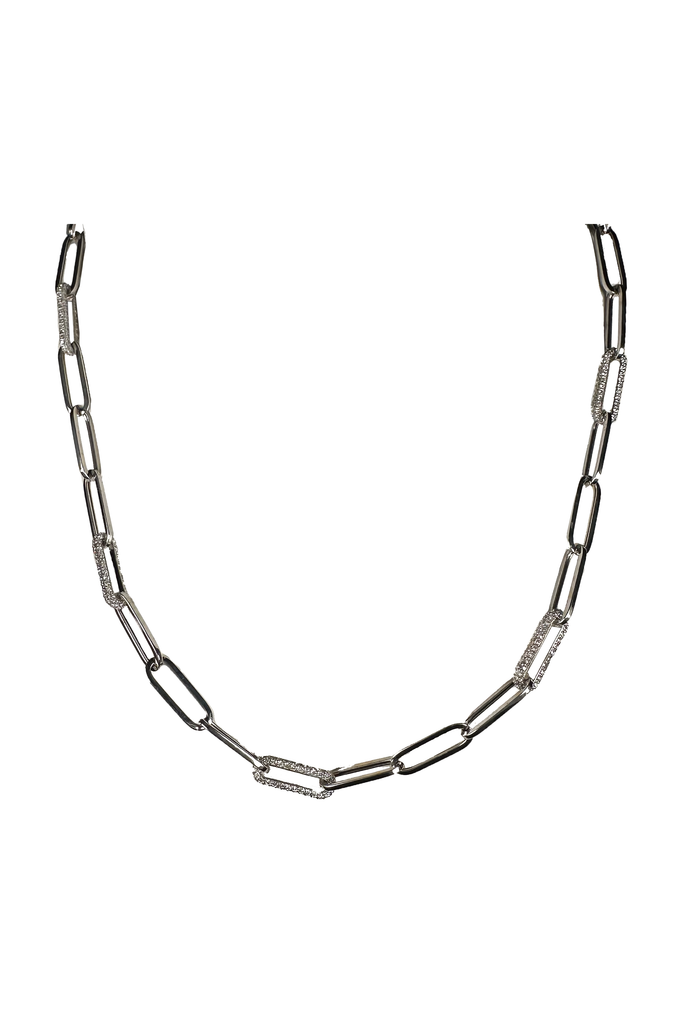 Our FC Creations 14K White Gold 5 Pave Diamond Links Paper Clip Chain Necklace is absolutely exquisite. Five pavé diamond links set S1 quality white diamonds.