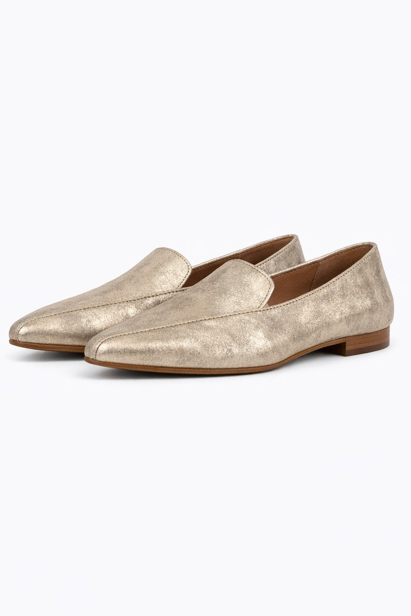 The Donna Carolina Iris Radiance Loafer is a modern essential defined by understated elegance and expert Italian craftsmanship. Crafted in luminous Platino leather, this loafer delivers subtle metallic warmth with a soft, refined finish—perfect for elevating everyday looks.
