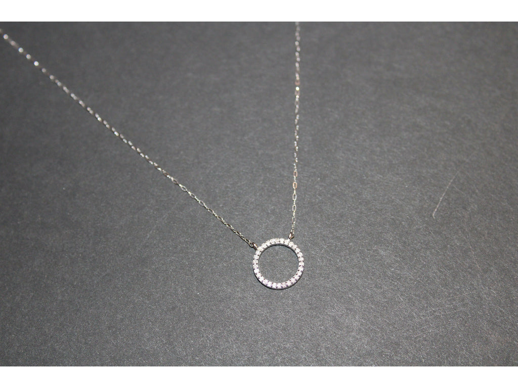 FC Creations Necklace 14K Gold Open Circle Diamond Pendant | 18 Inch White Gold | Sale - Buy Now No Returns