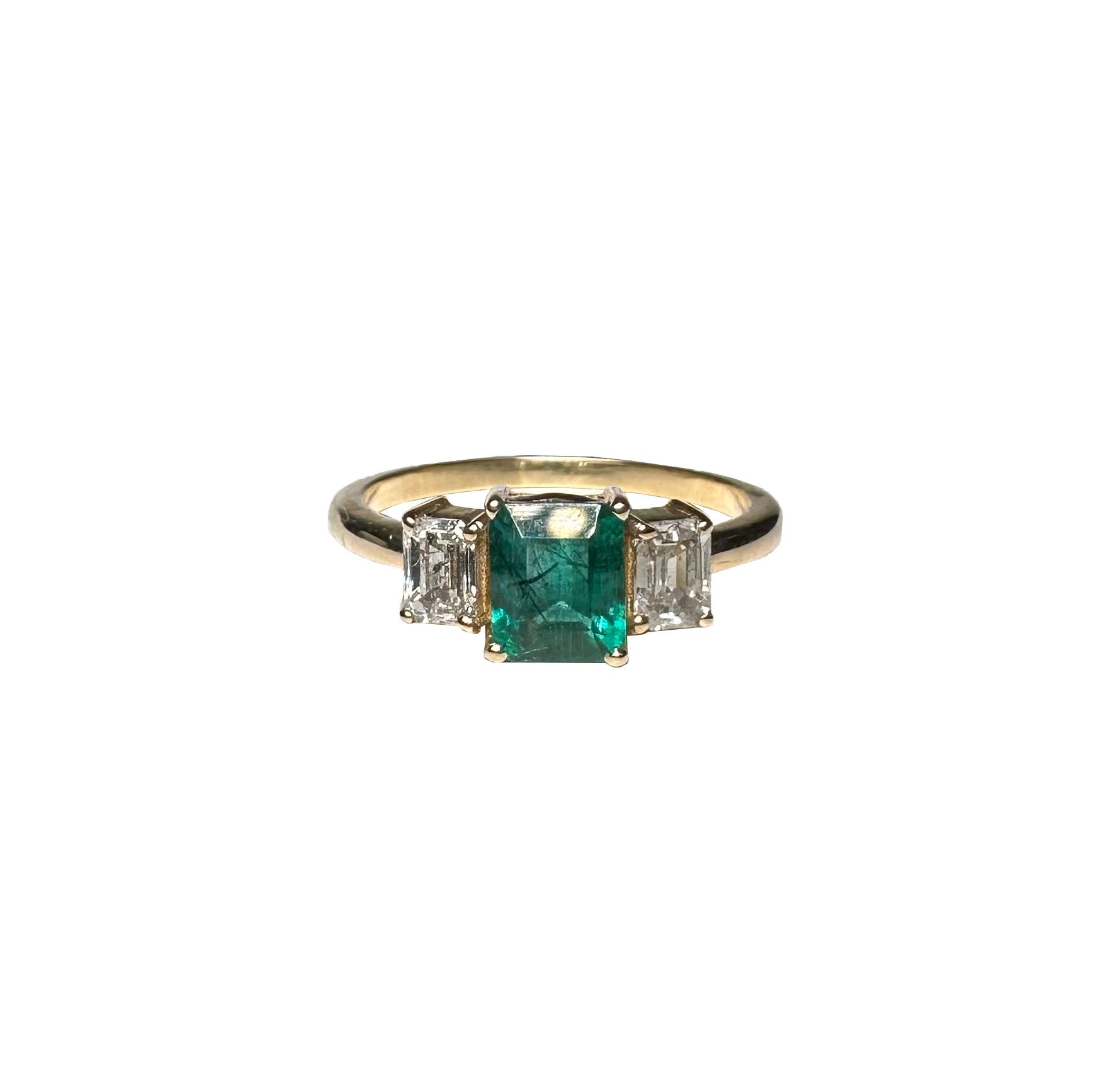 FC Creations Ring 14K Gold Diamond Emerald Ring | Yellow Gold CTTW Diamond 0.55 Carat CTTW Emerald 1.15 Carat