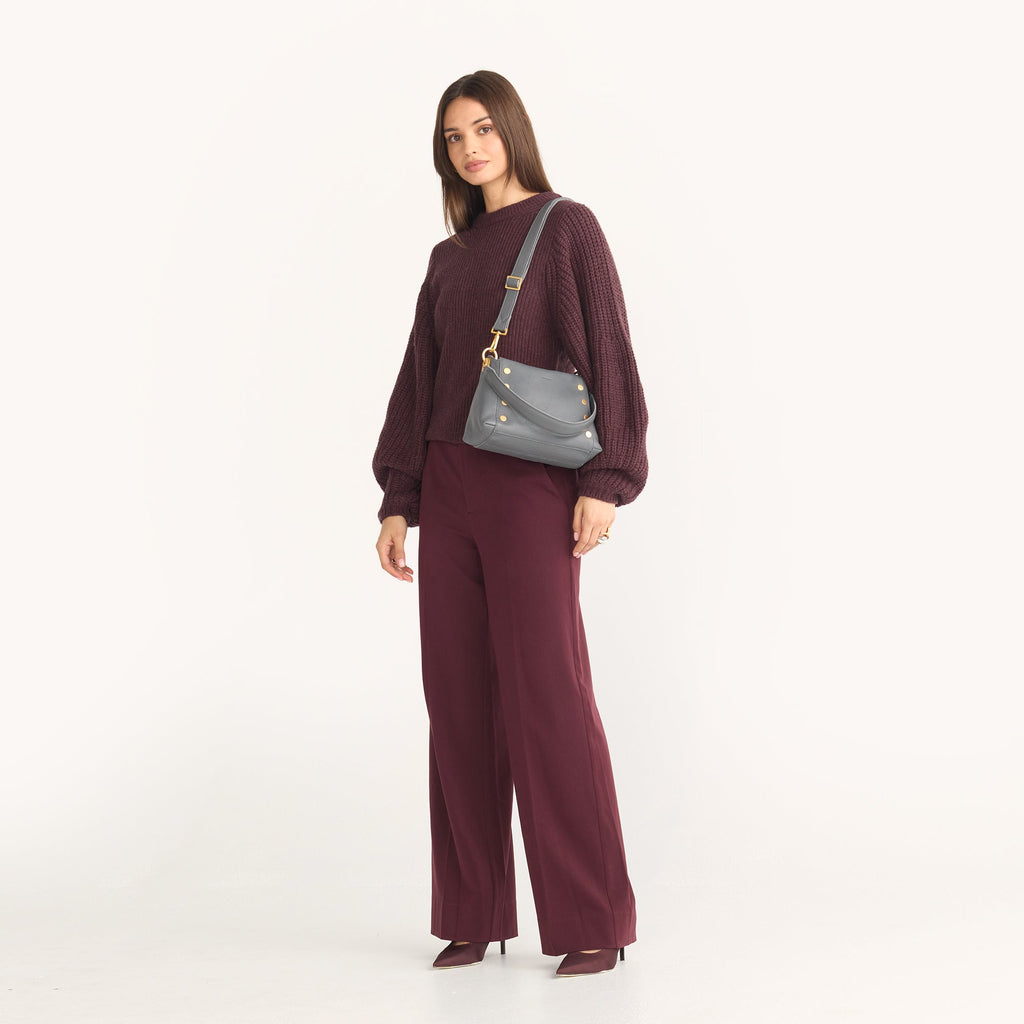 The Hammitt Bryant Medium Crossbody Bag in this mid-tone shade of gray exudes timeless charm. This bag boasts a space-efficient design that provides ample room for all your essentials while also offering added accessibility. Expertly crafted, this bag is perfect for maximizing space without compromising your style. Buy with confidence, all Hammitt bags have a lifetime guarantee.