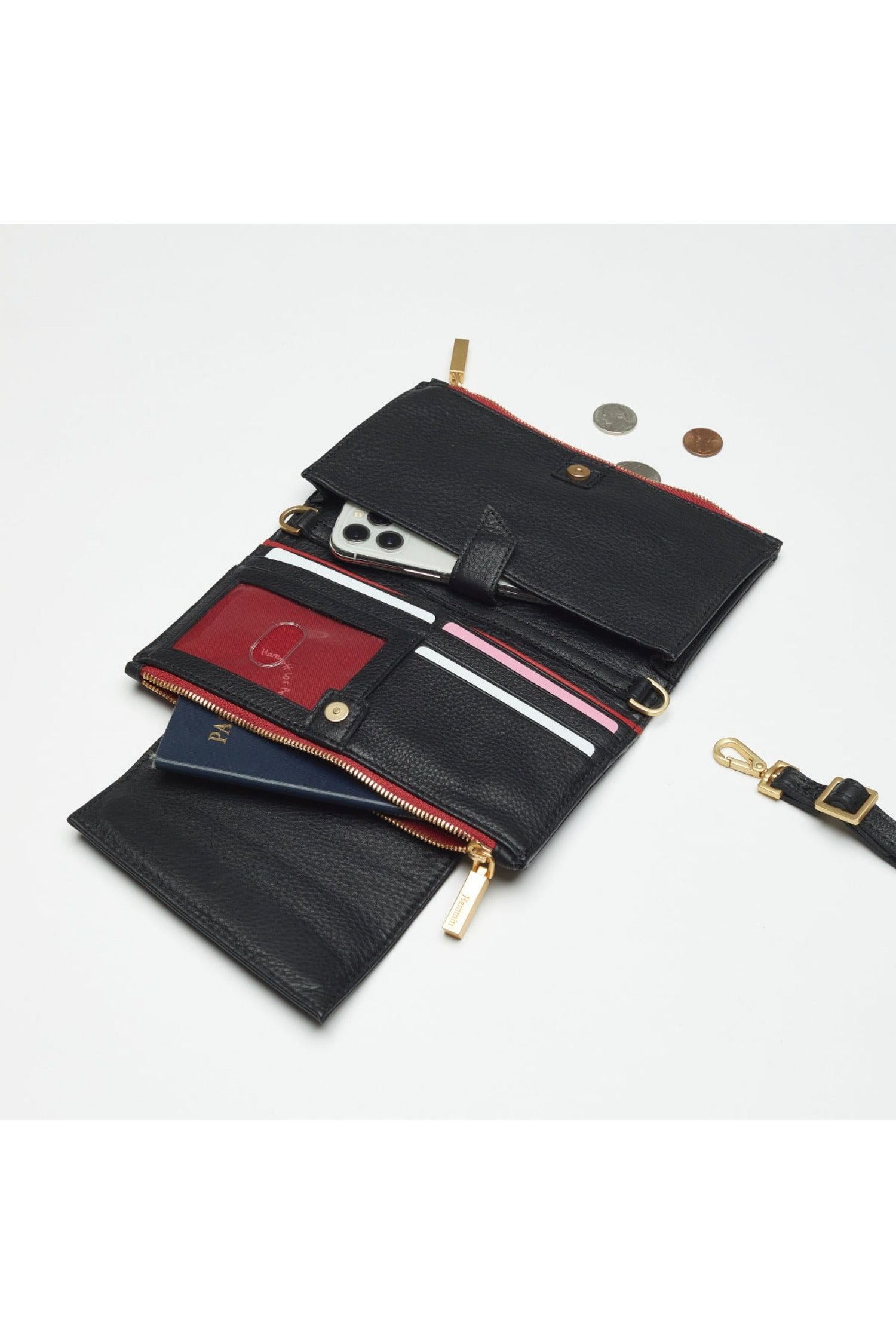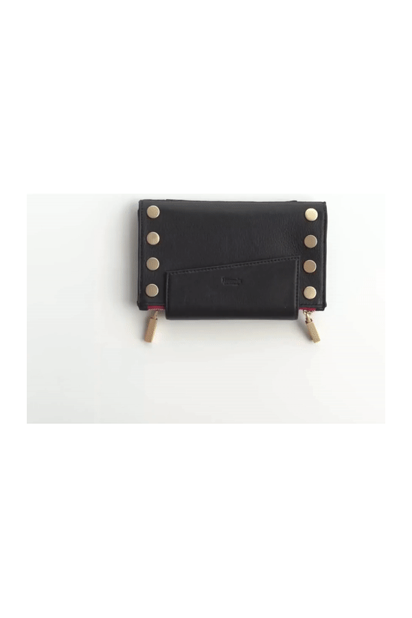 Hammitt Levy Crossbody Wallet 14937 | Black/Brushed Gold Red Zip
