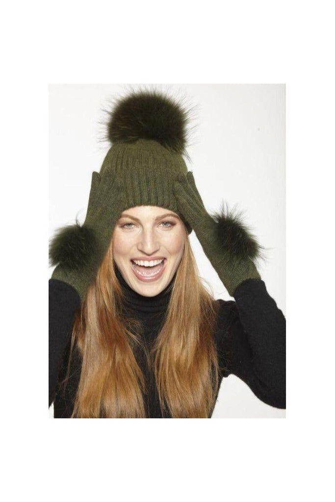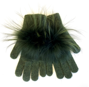 Linda Richards Angora Wool Knit Pom-Pom Gloves GL-04 | Olive