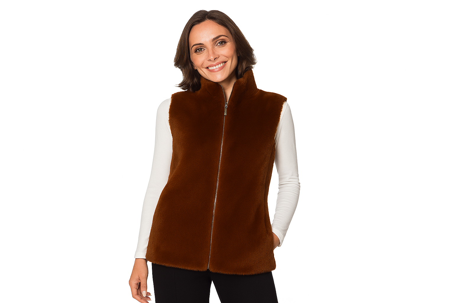 Linda Richards Reversible Lamb Fur Vest LM-260 | Brown