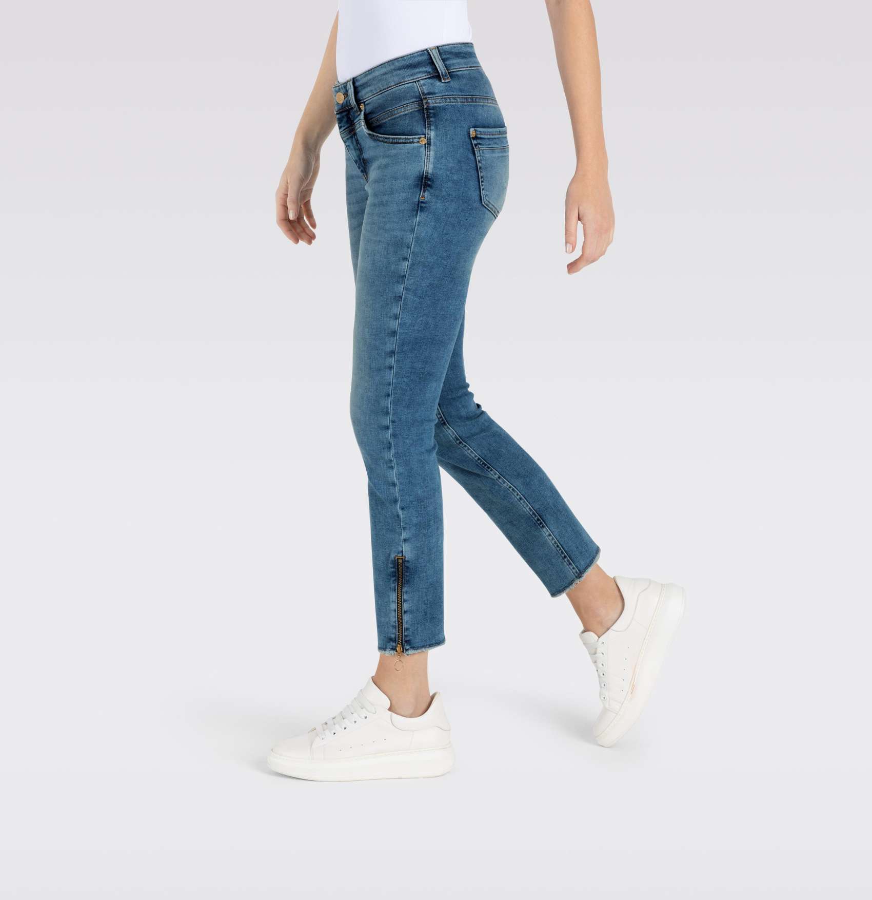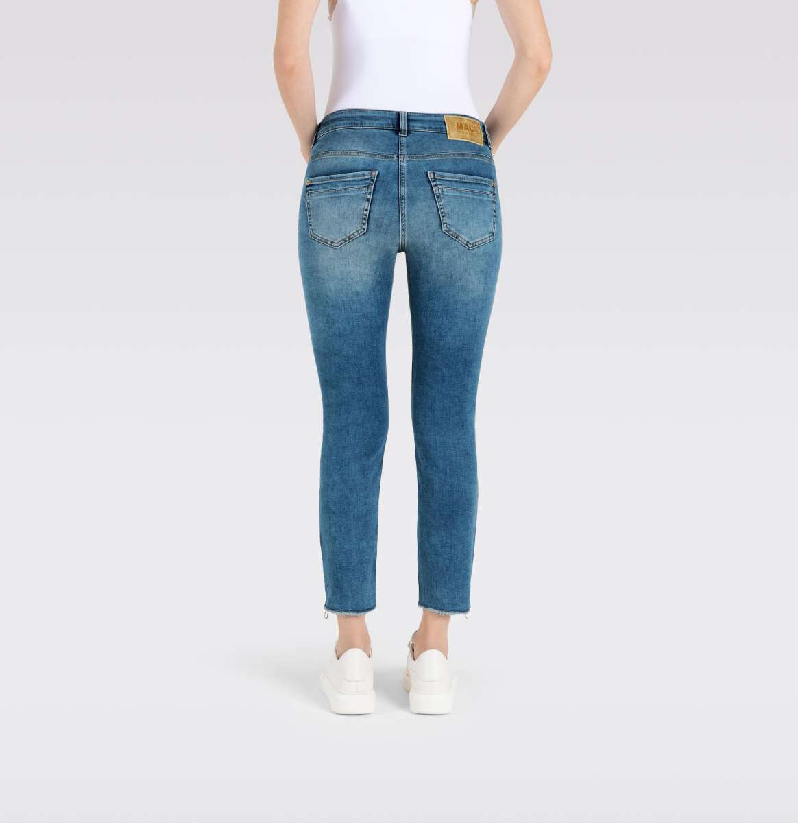 Experience the incredible 4-way stretch technology of Mac Jeans Rich Slim Chic. These authentic indigo used wash jeans feature a slim leg with a straight fit and a stylish cropped hem. Whether paired with a tee or a top and your choice of cute sandals or sneakers, you'll love the luxurious and exclusive look and feel of these jeans all day long.