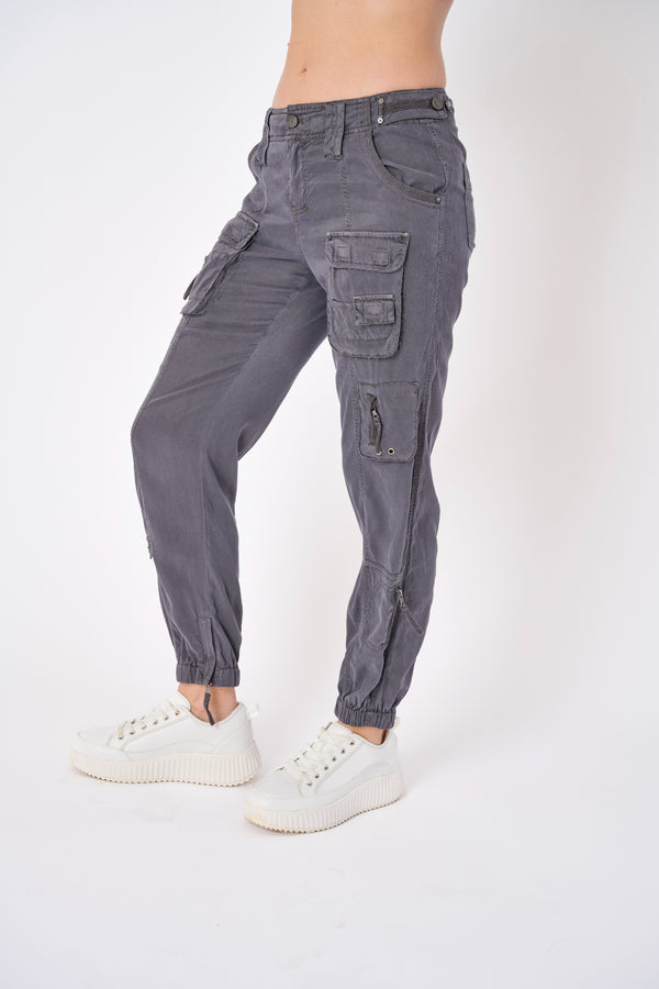 Effortlessly stylish and versatile, the Marrakech Cabo Cupro Pants RR 70620P in Gunmetal are the perfect addition to any wardrobe. These pants feature cargo pockets with zipper and velcro detail, providing both style and functionality. With a versatile fit, these pants are sure to become a staple in your wardrobe.