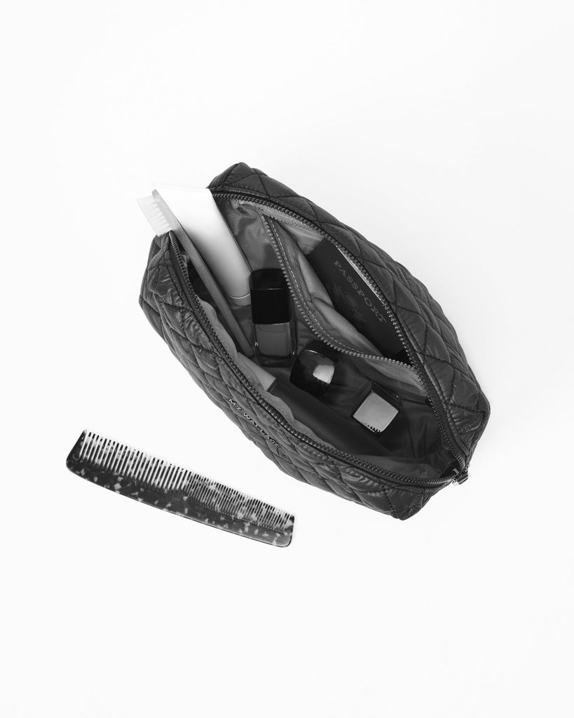 The MZ Wallace Mica Cosmetic Bag is roomy and lightweight, it was designed to be the perfect size and shape to fit your cosmetic essentials, whether packed in a carry-on or tucked in your work or gym bag. Details:
