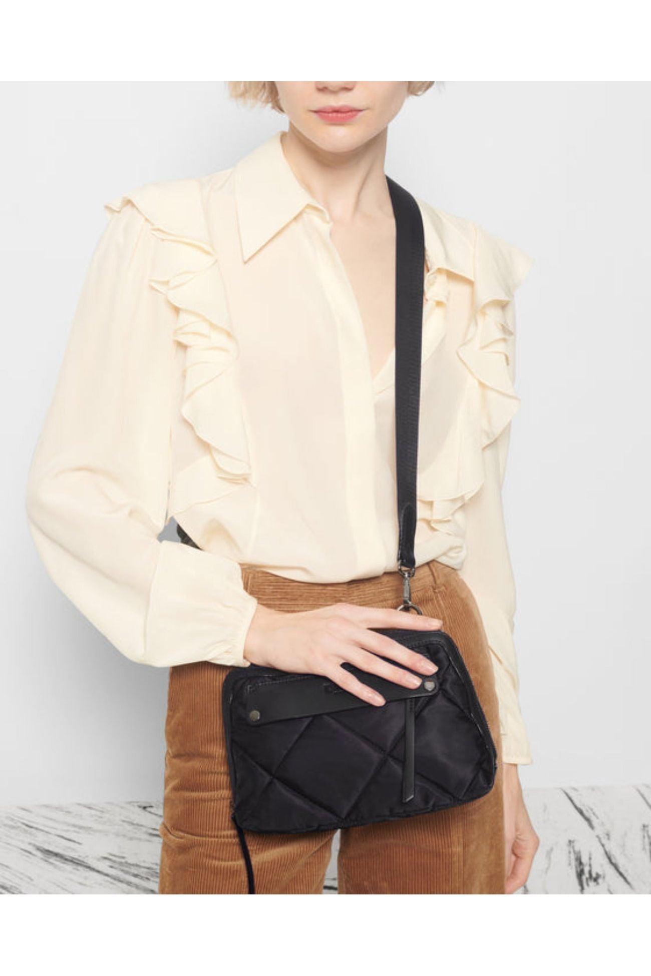 - Detachable, adjustable nylon crossbody strap