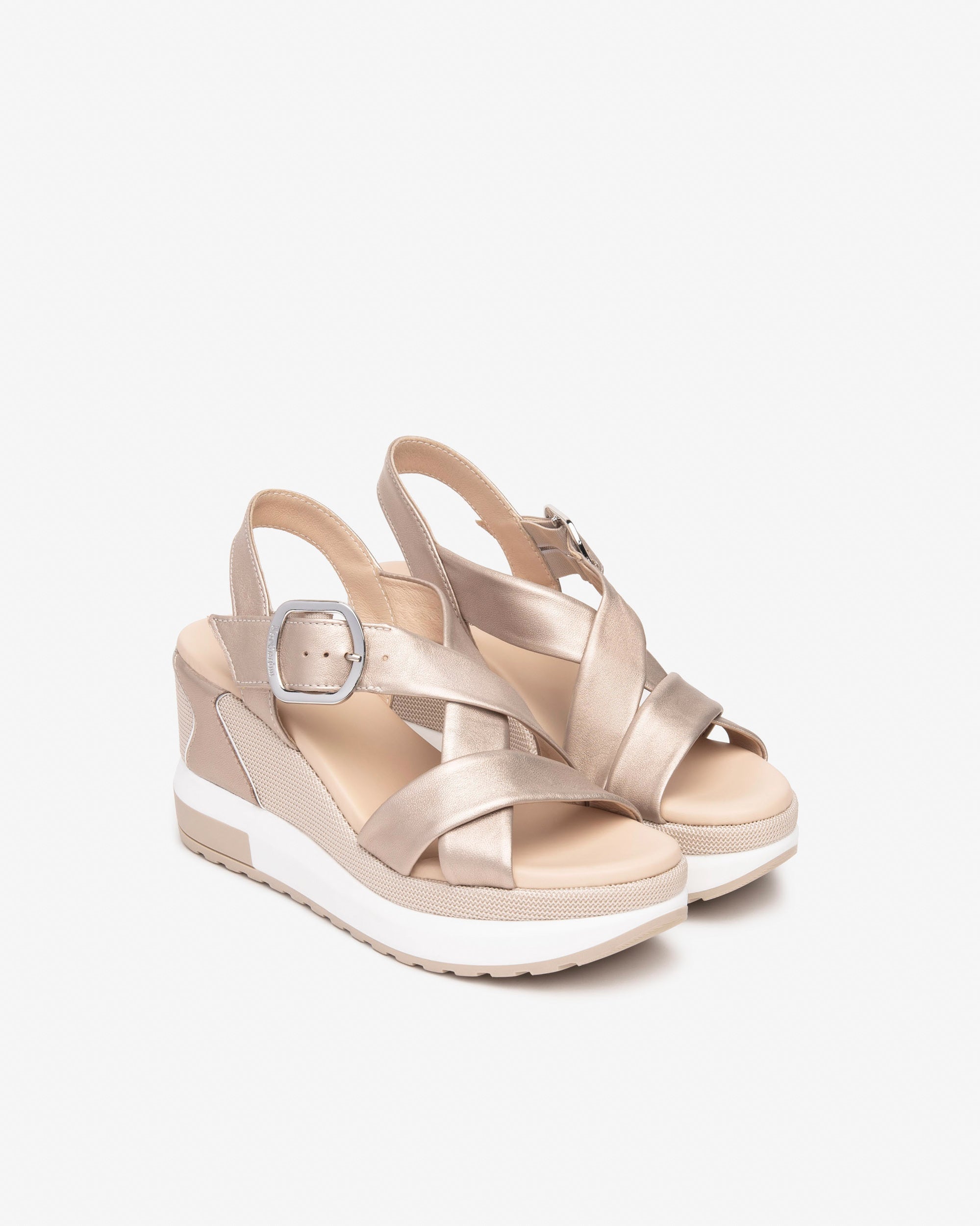 NeroGiardini Buckle Platform Wedge Sandals E513605D | (675) Sand