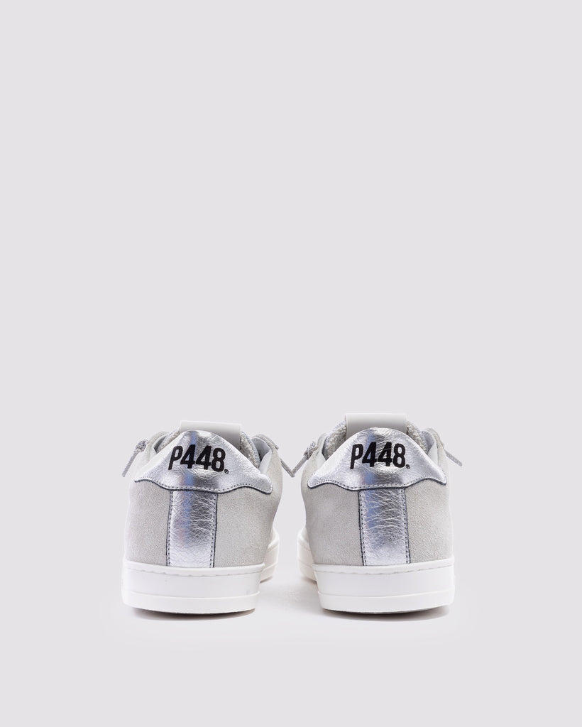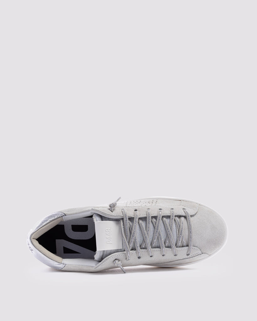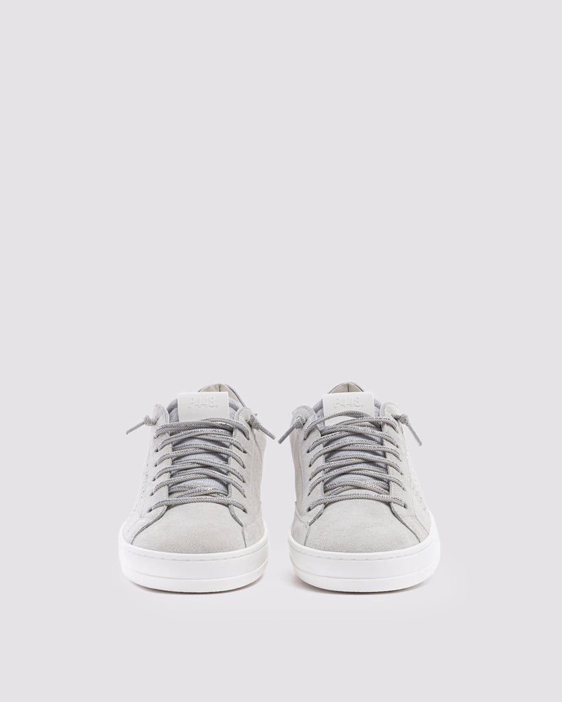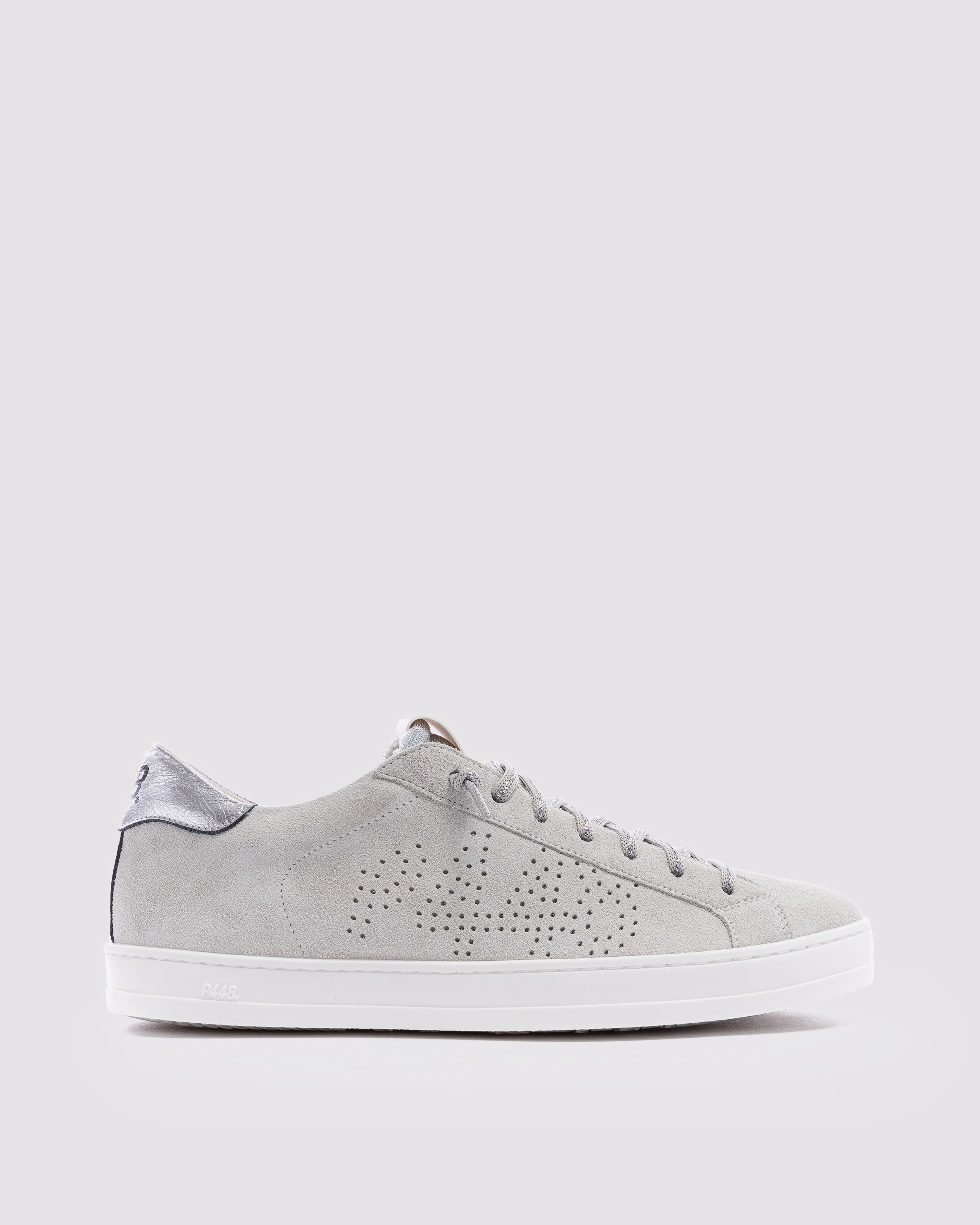 The P448 John Low Top Sneaker brings effortless style to any look. Crafted with light grey suede and silver fabric accents, this neutral sneaker instantly elevates any look. Complete with silver laces and treads, the John Platinum is the perfect combination of luxury and versatility.