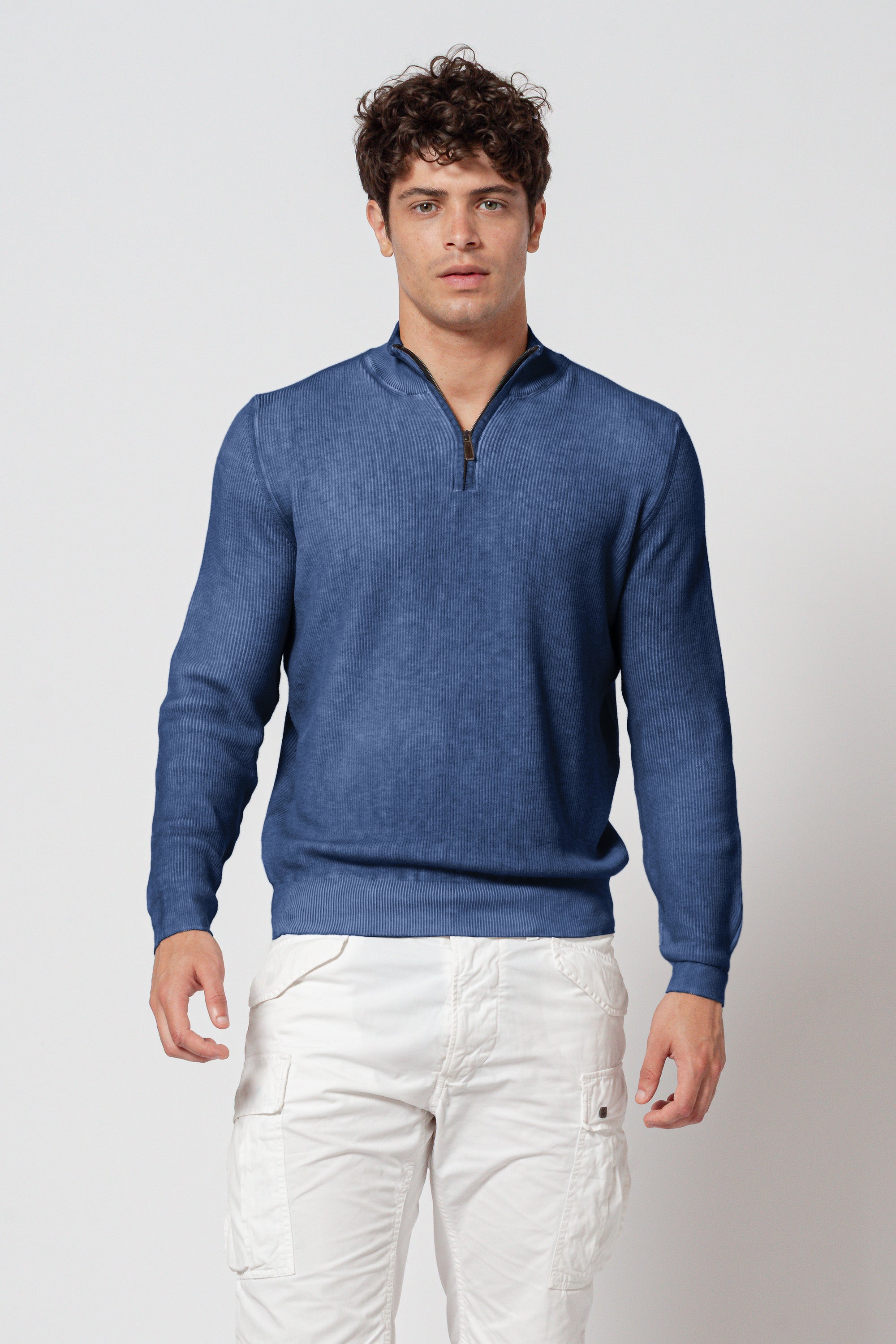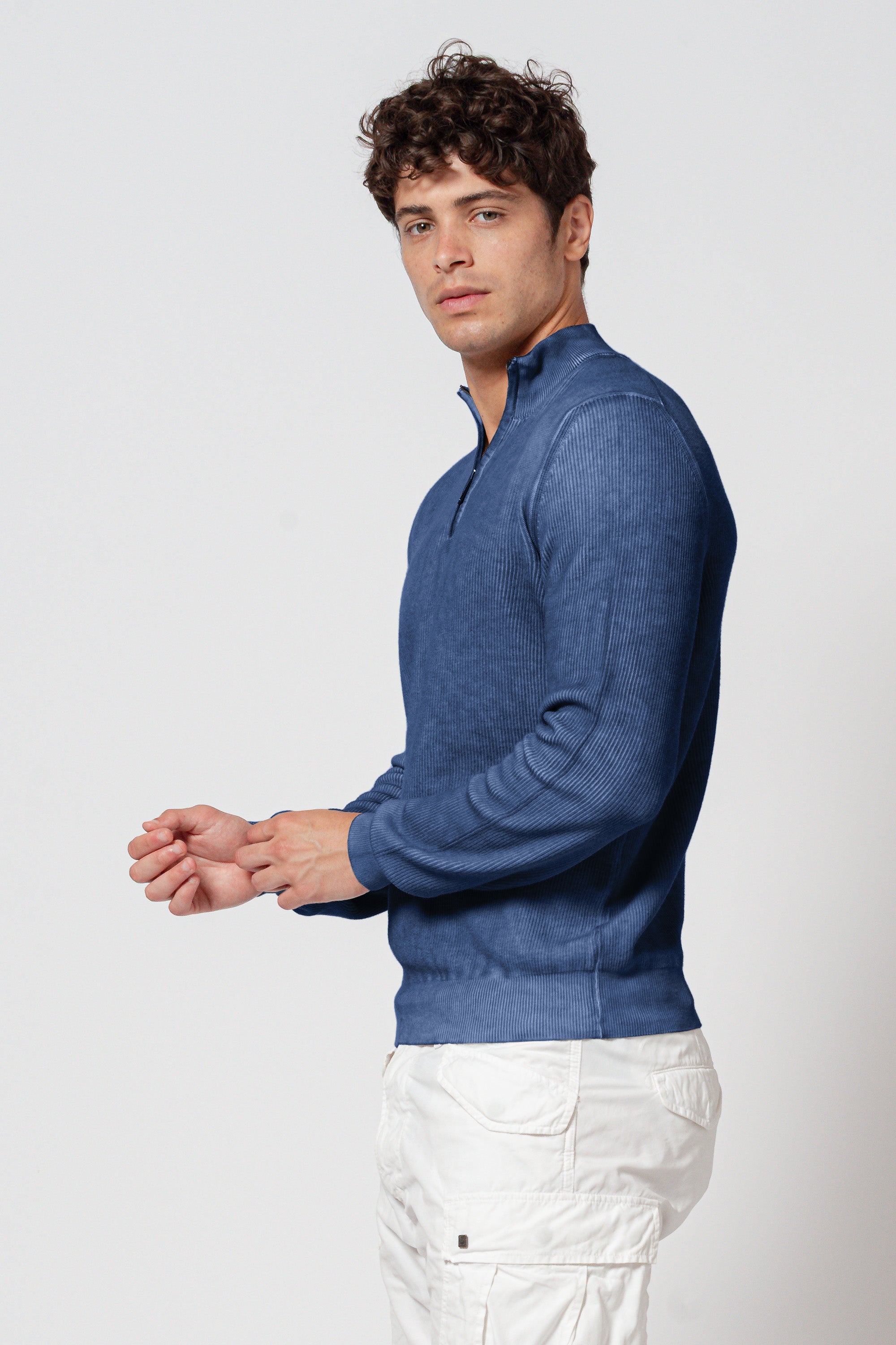 - Half‑zip mock neck that adjusts easily from relaxed to refined