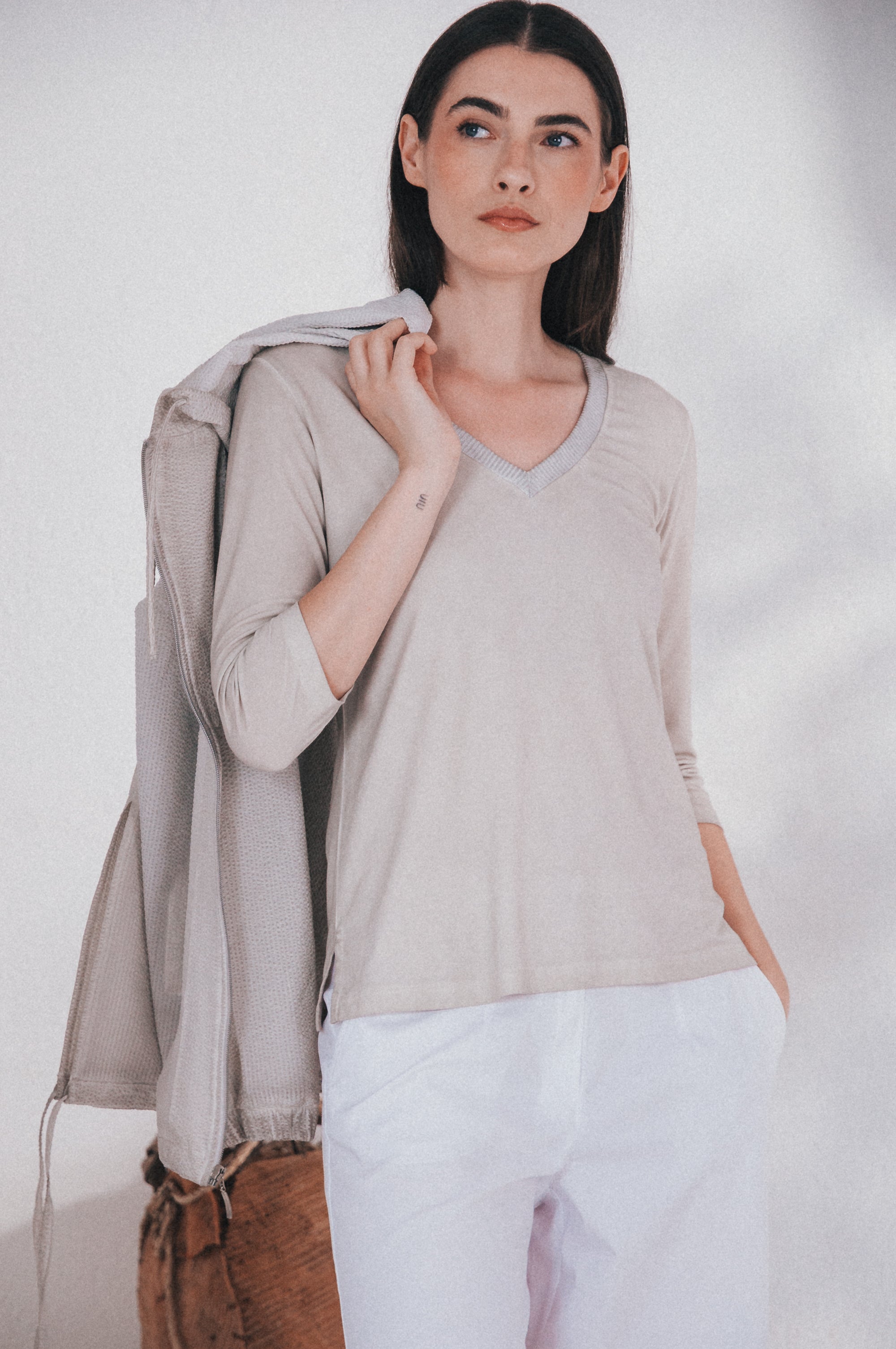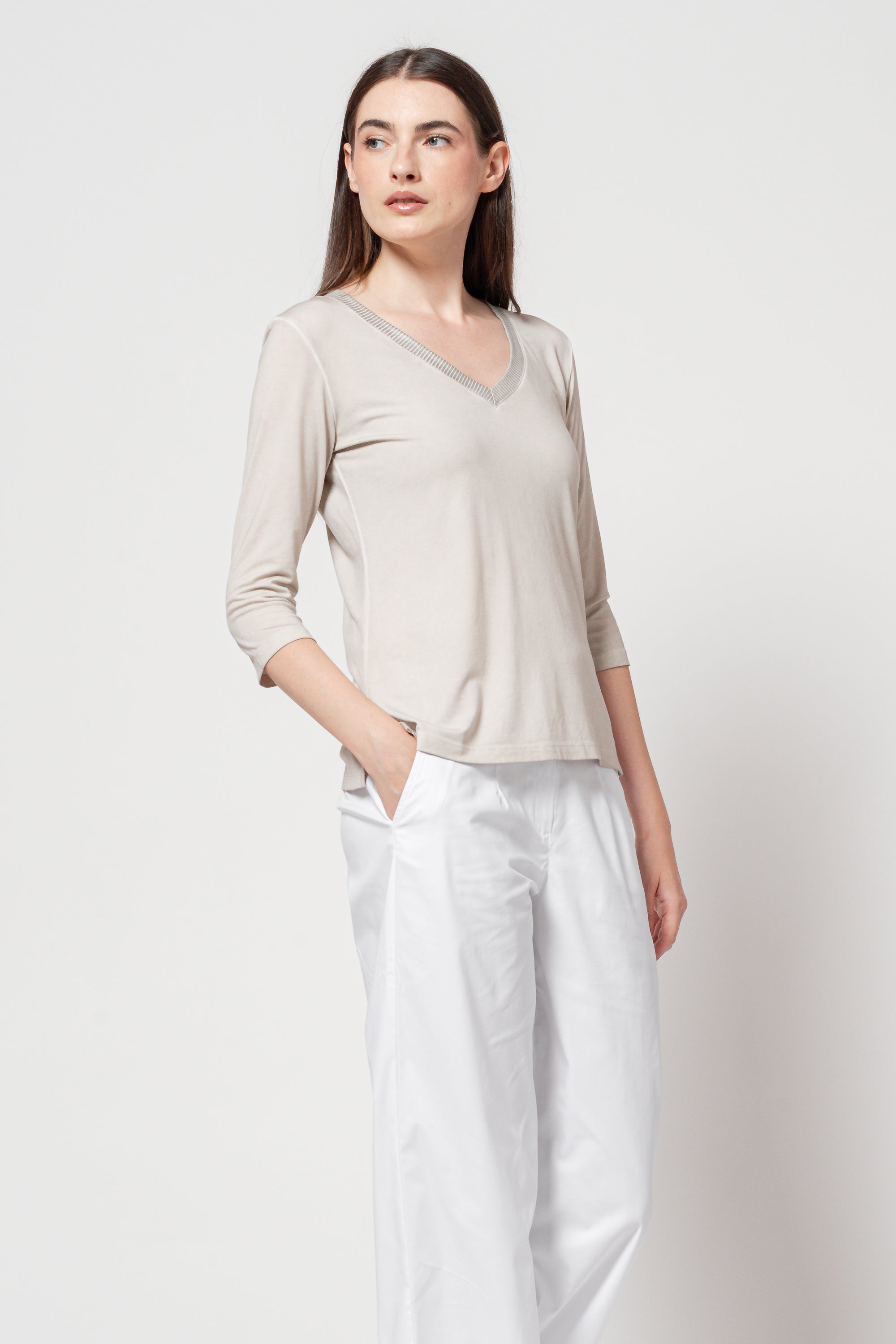 Ploumanac'h Vitty V-Neck 3/4 Sleeve T-Shirt 18W3251 40F | Canapa (Beige)