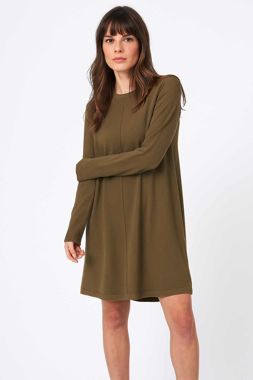 REPEAT Cashmere A-line Merino Wool Knit Dress 300191 | Khaki