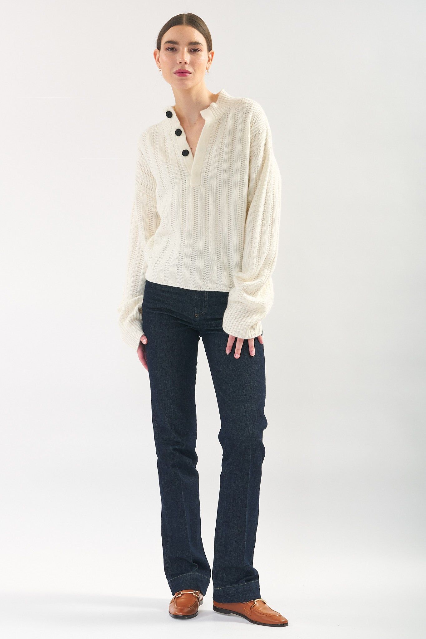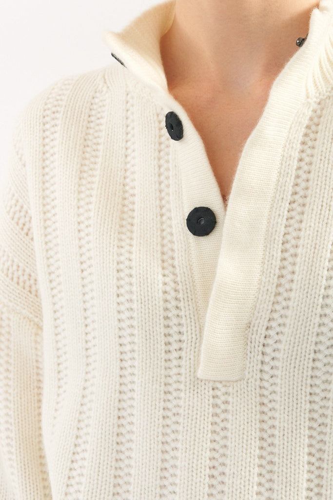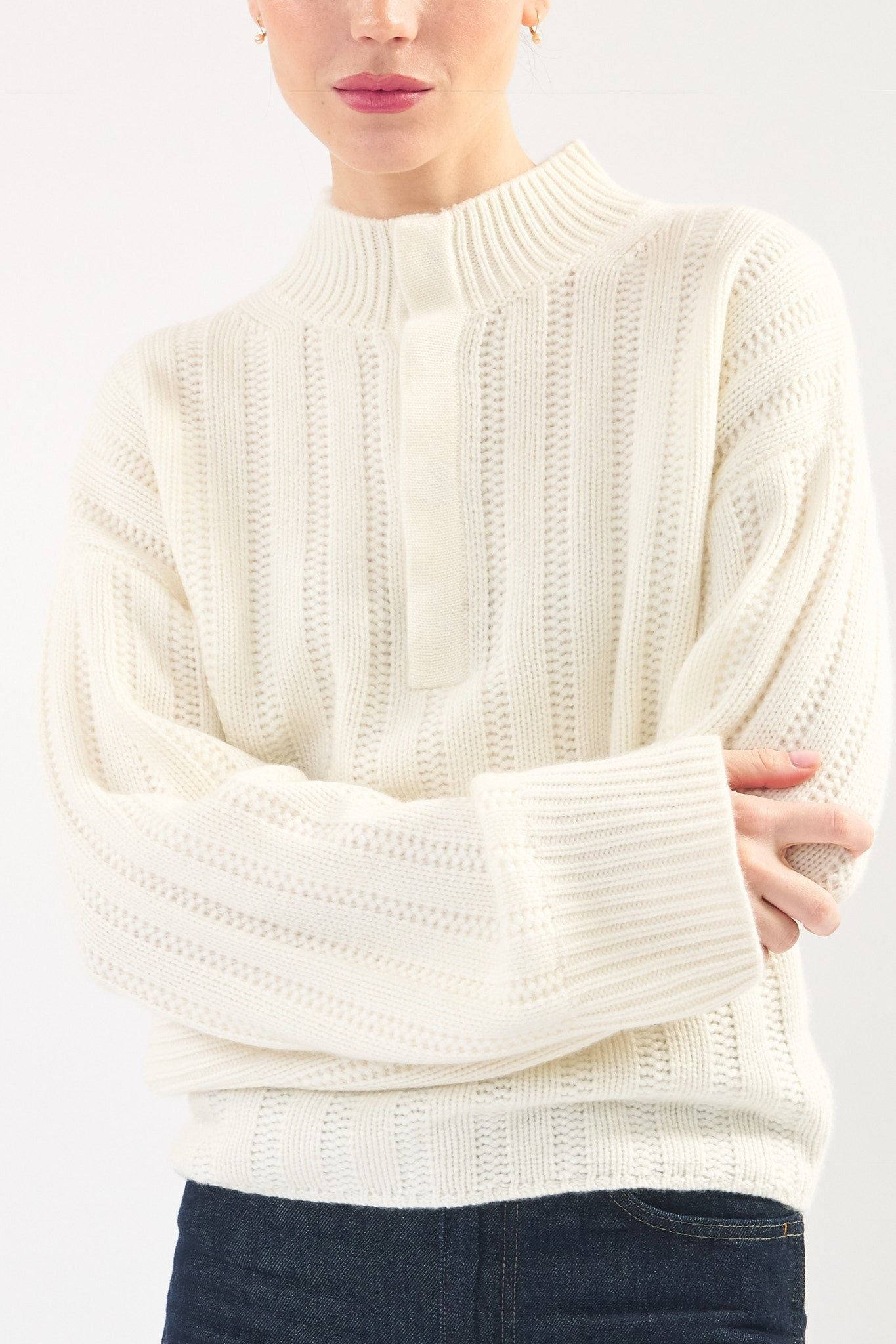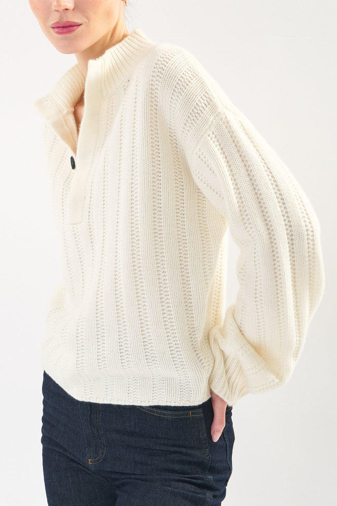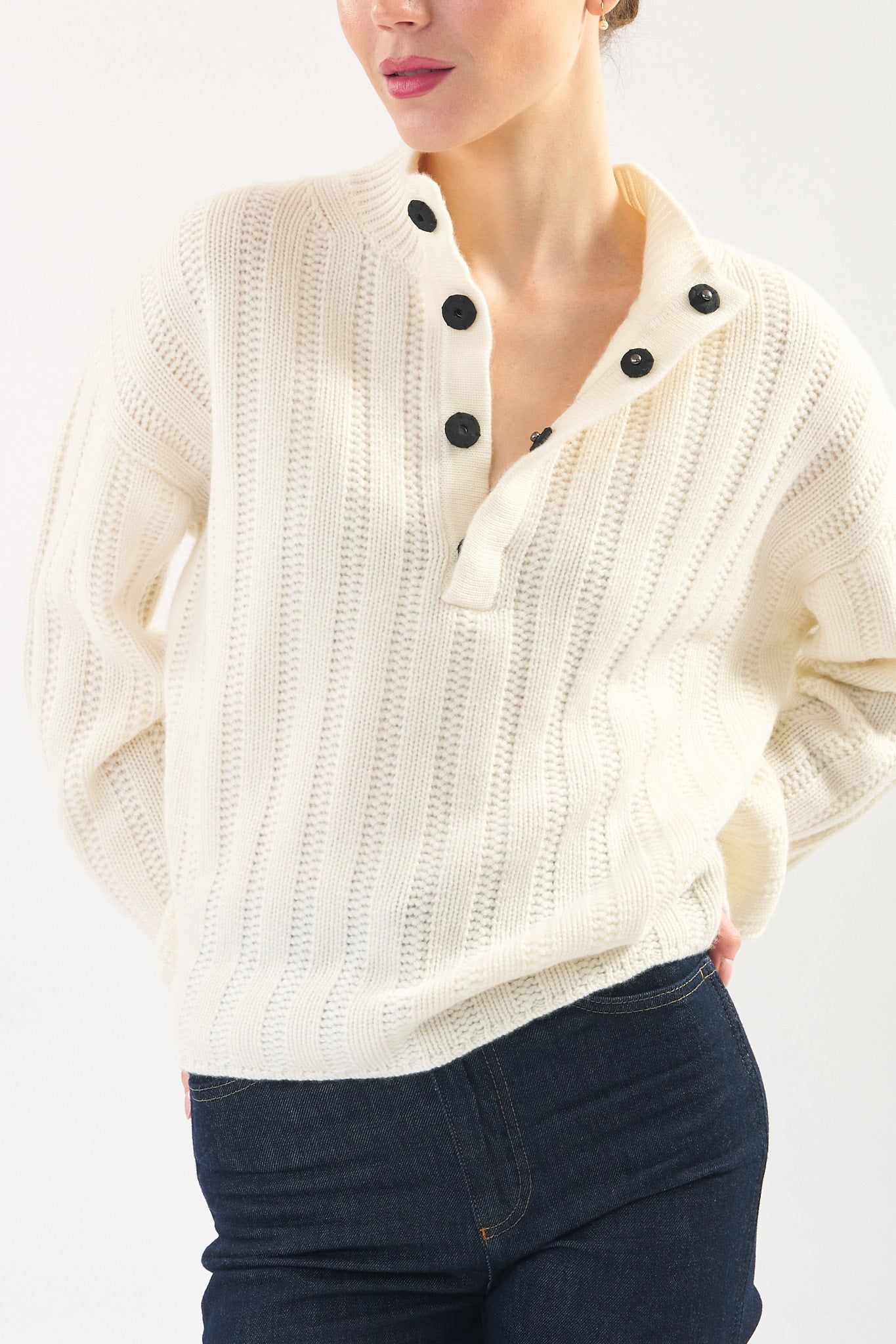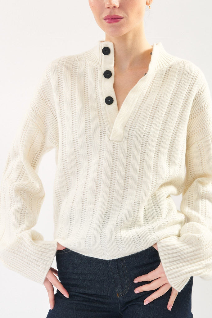 Robertson Madison 100% Cashmere Cable Knit Button Pullover CC-261 | Ivory