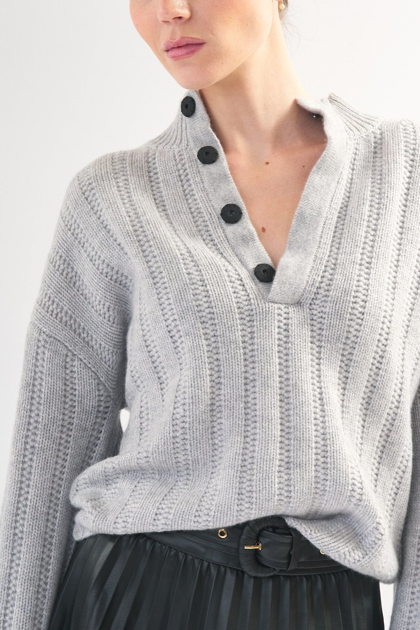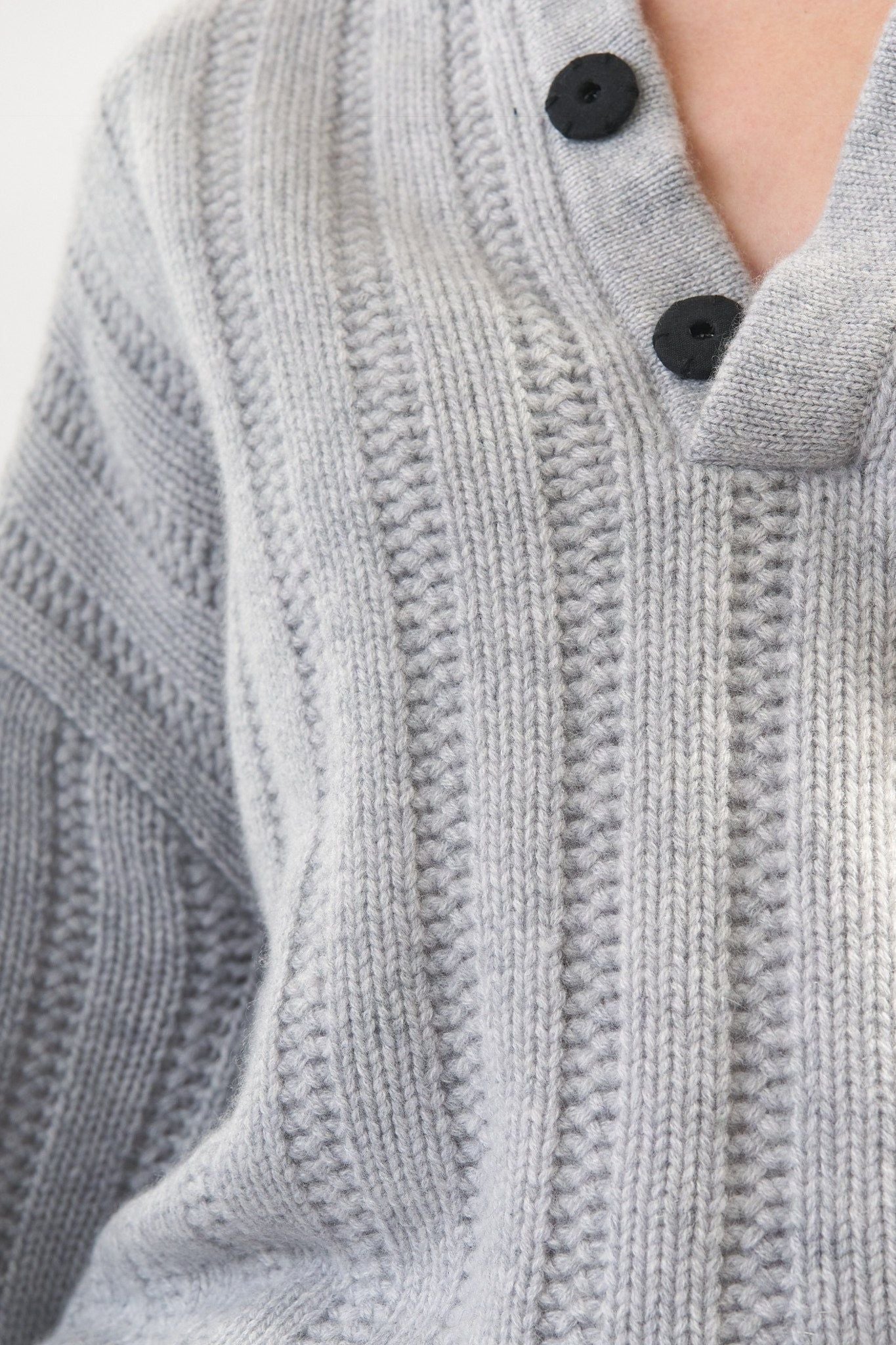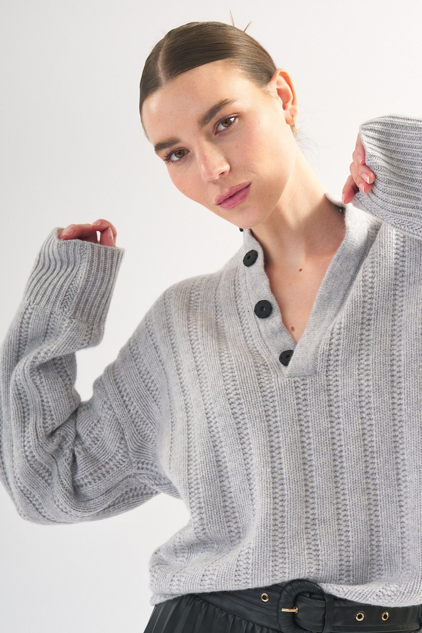 Robertson Madison 100% Cashmere Cable Knit Button Pullover CC-261 | Light Heather Grey