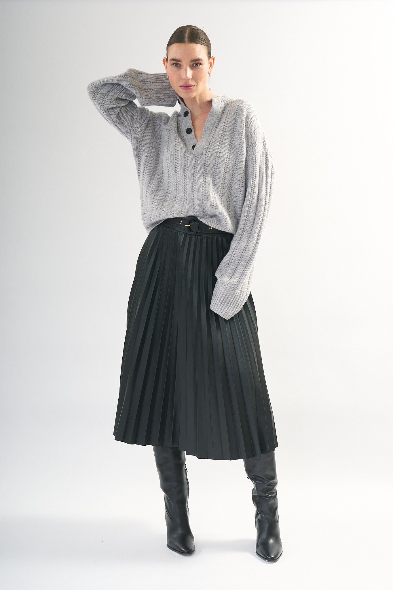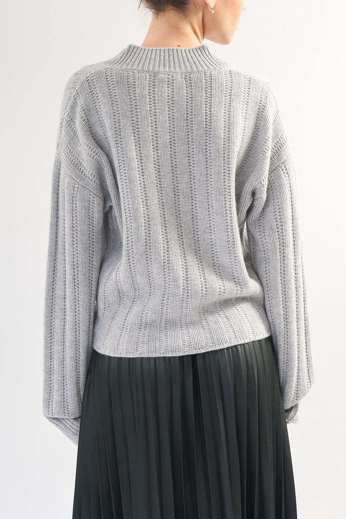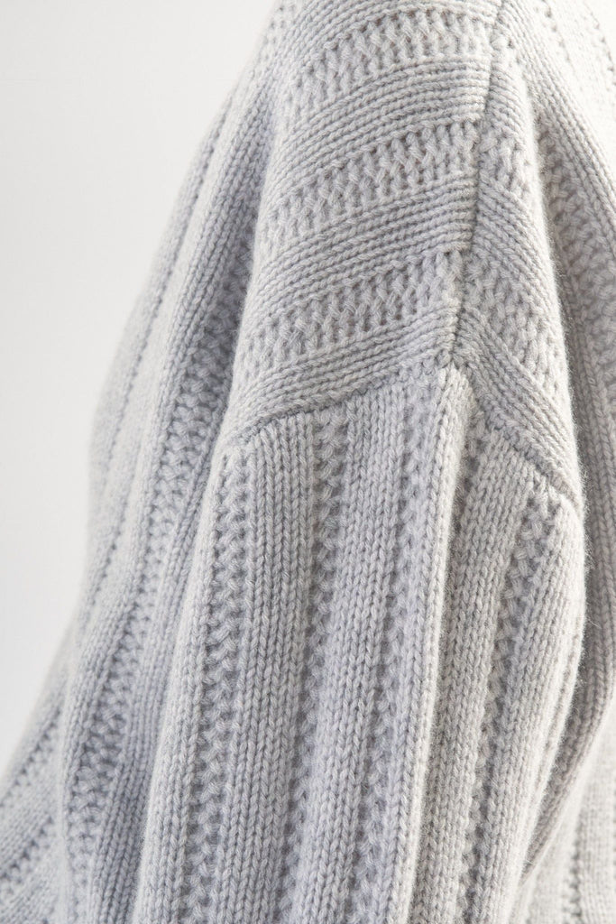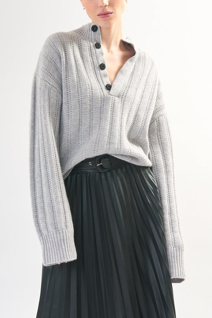 Robertson Madison 100% Cashmere Cable Knit Button Pullover CC-261 | Light Heather Grey