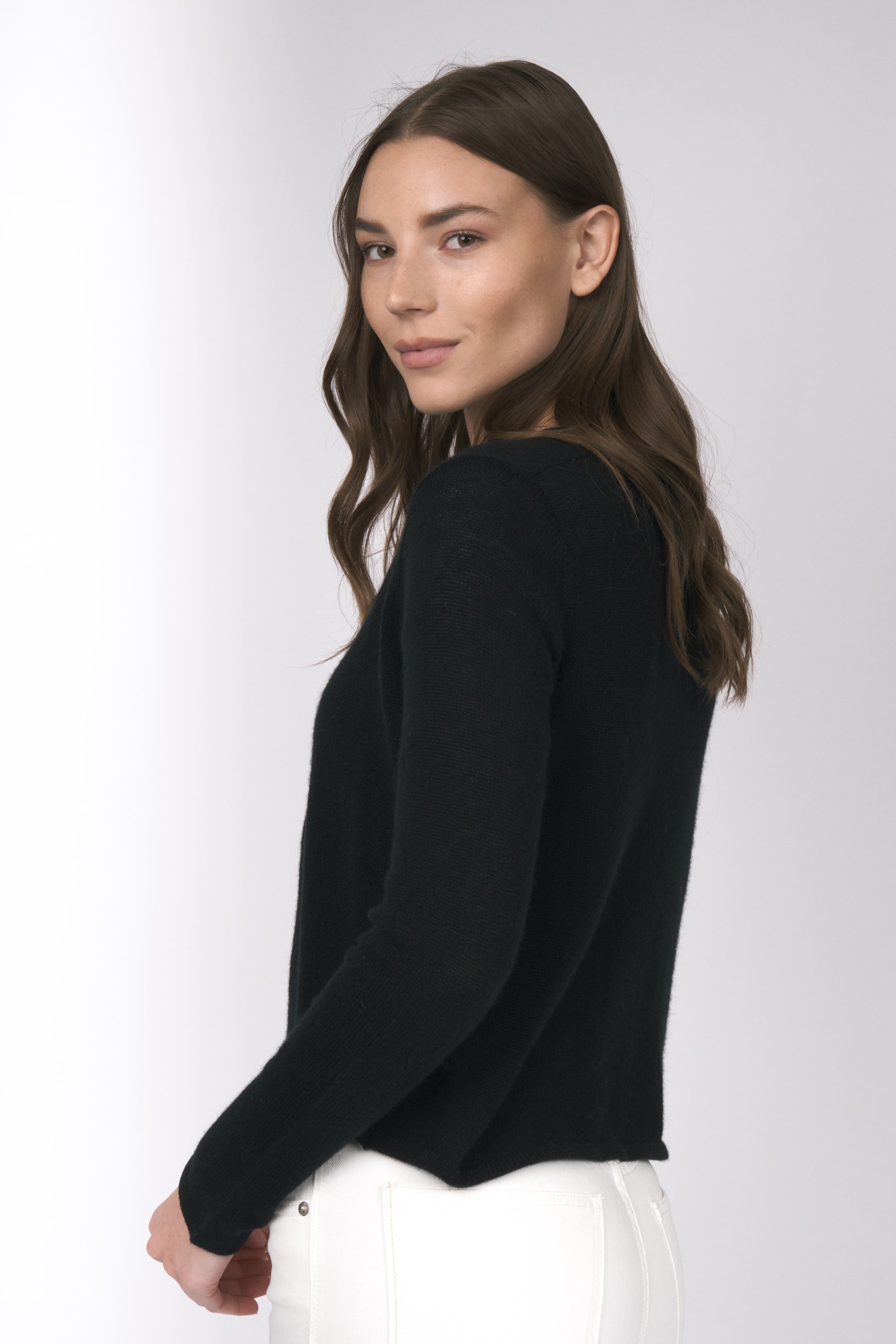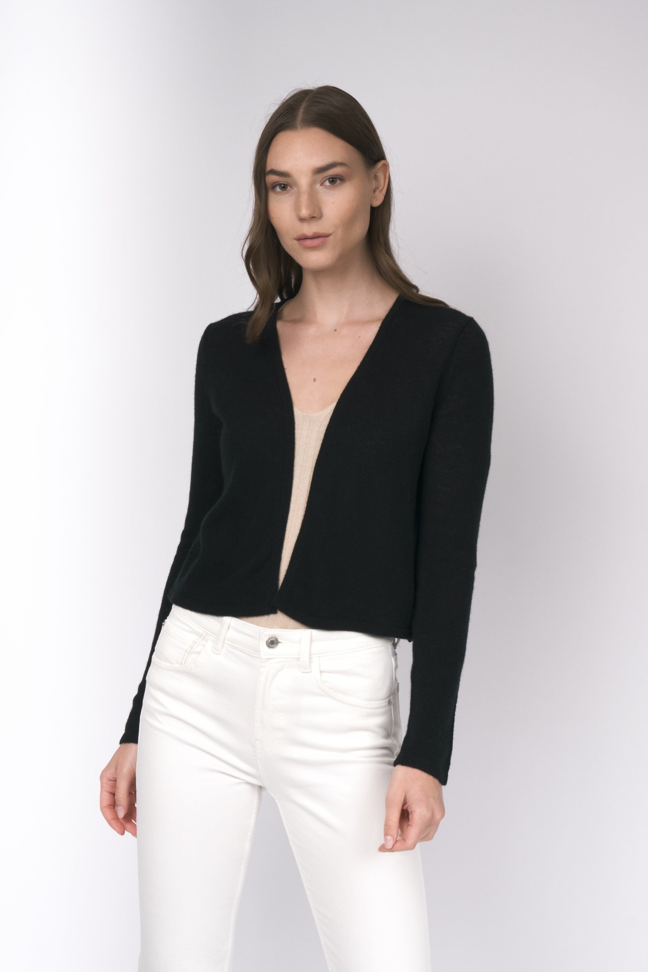 Robertson Madison 100% Cashmere Cropped Cardigan CC-256 | Black