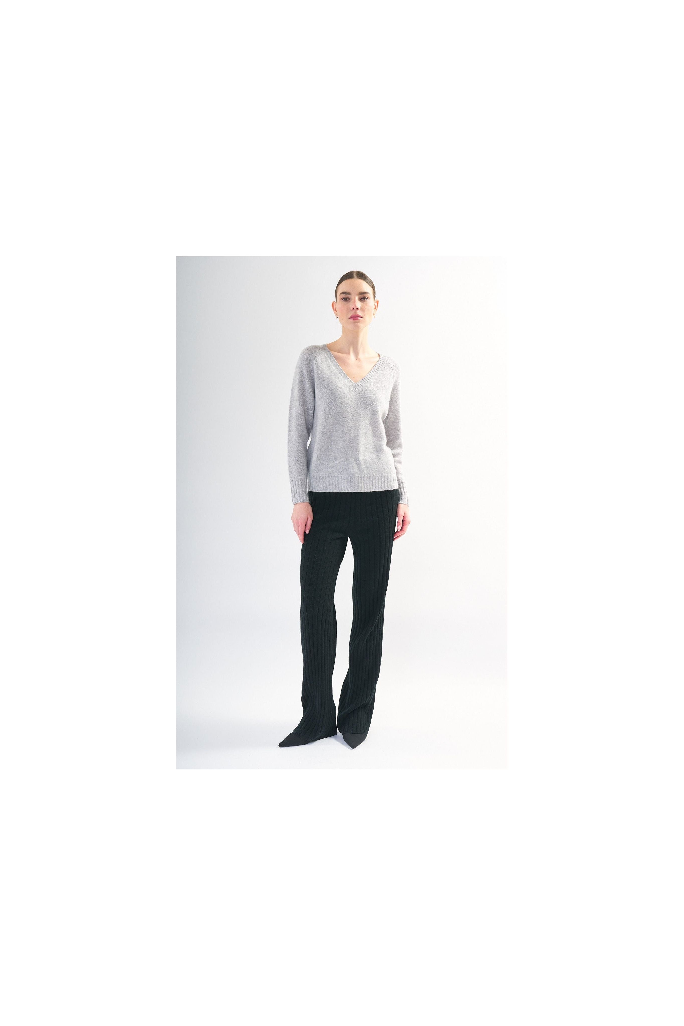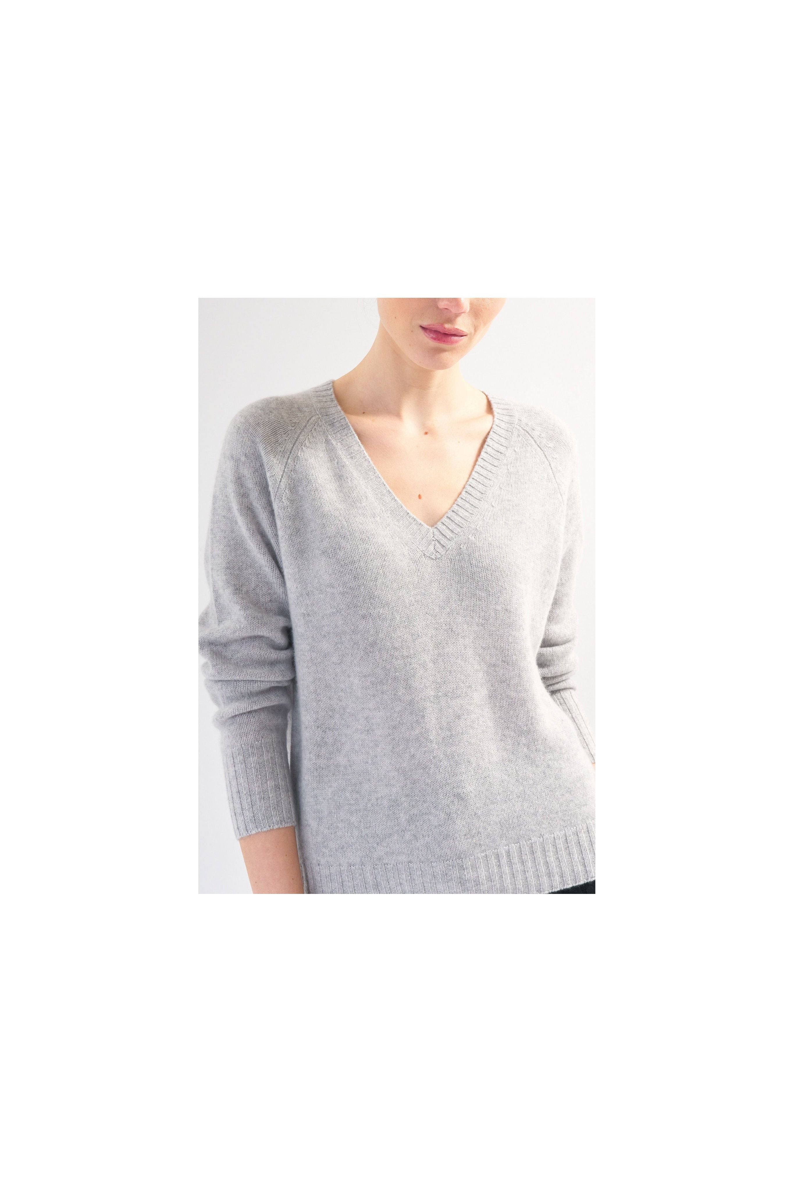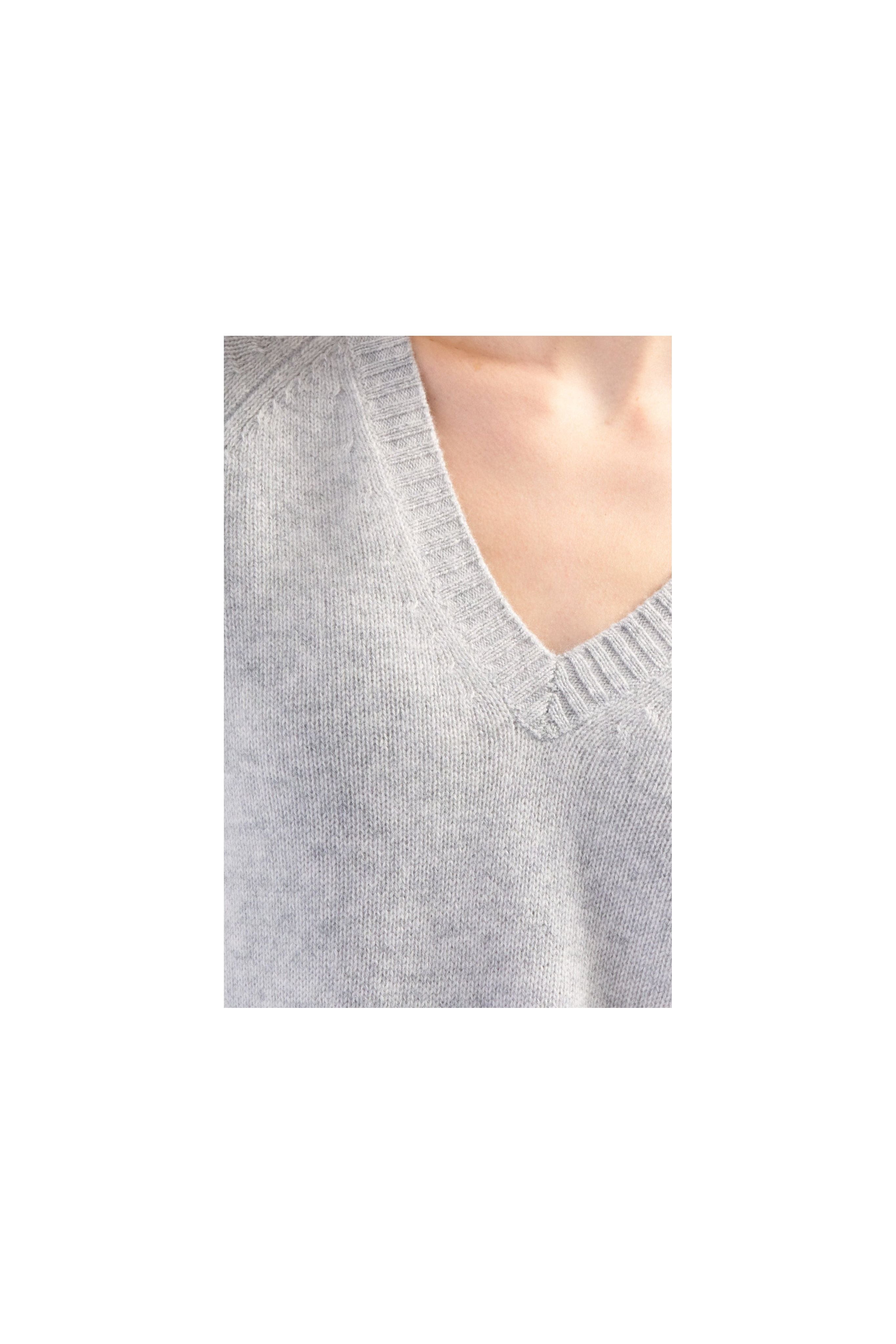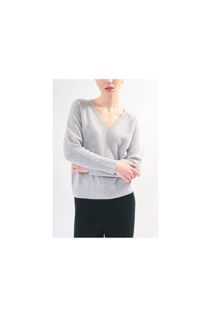 Robertson Madison 100% Cashmere V Neck Sweater CC-113 | Light Grey