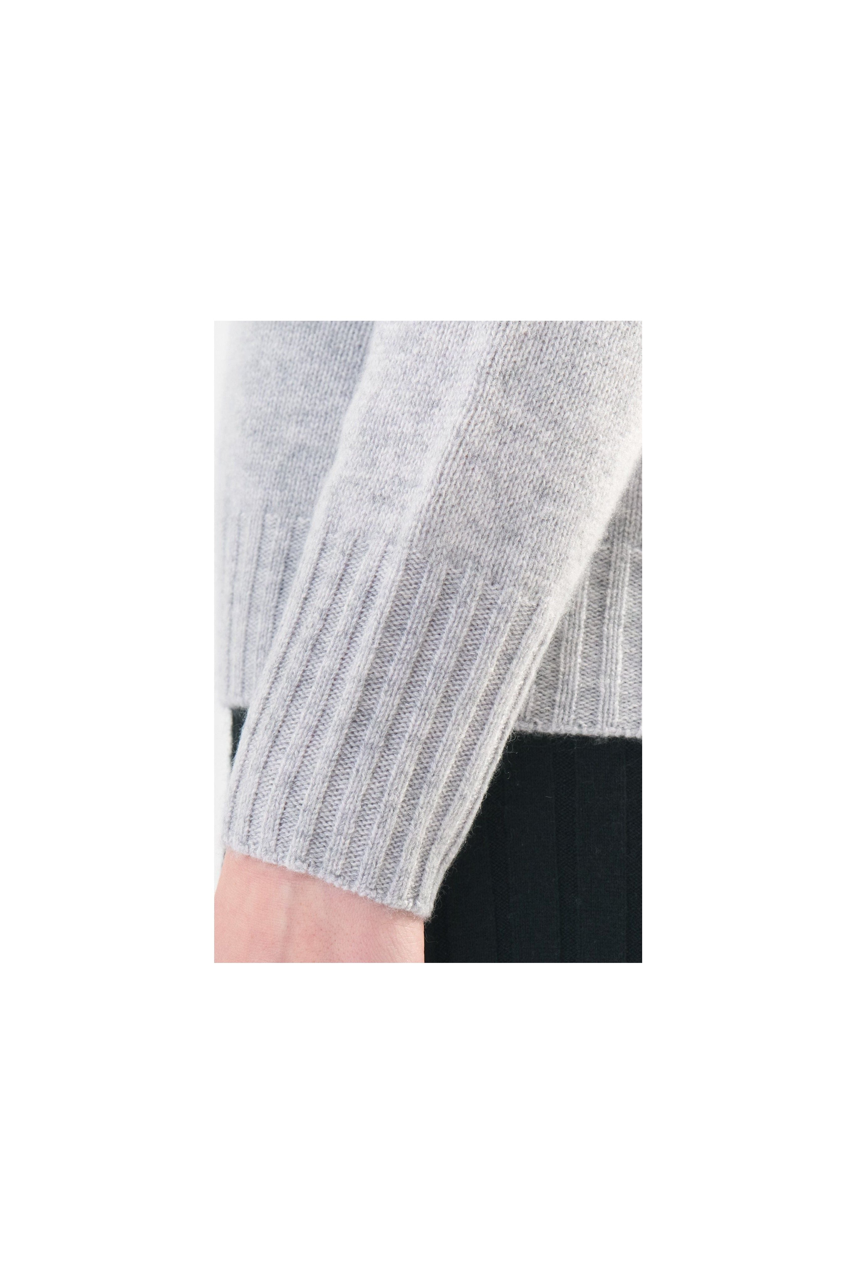 The Robertson Madison CC-113 is a versatile addition to any wardrobe. Crafted from 100% Mongolian Cashmere, this light grey cropped V neck sweater offers a luxurious feel and timeless style. Its versatile design allows for adaptive styling: perfect for casual wear or for layering over a shirt.