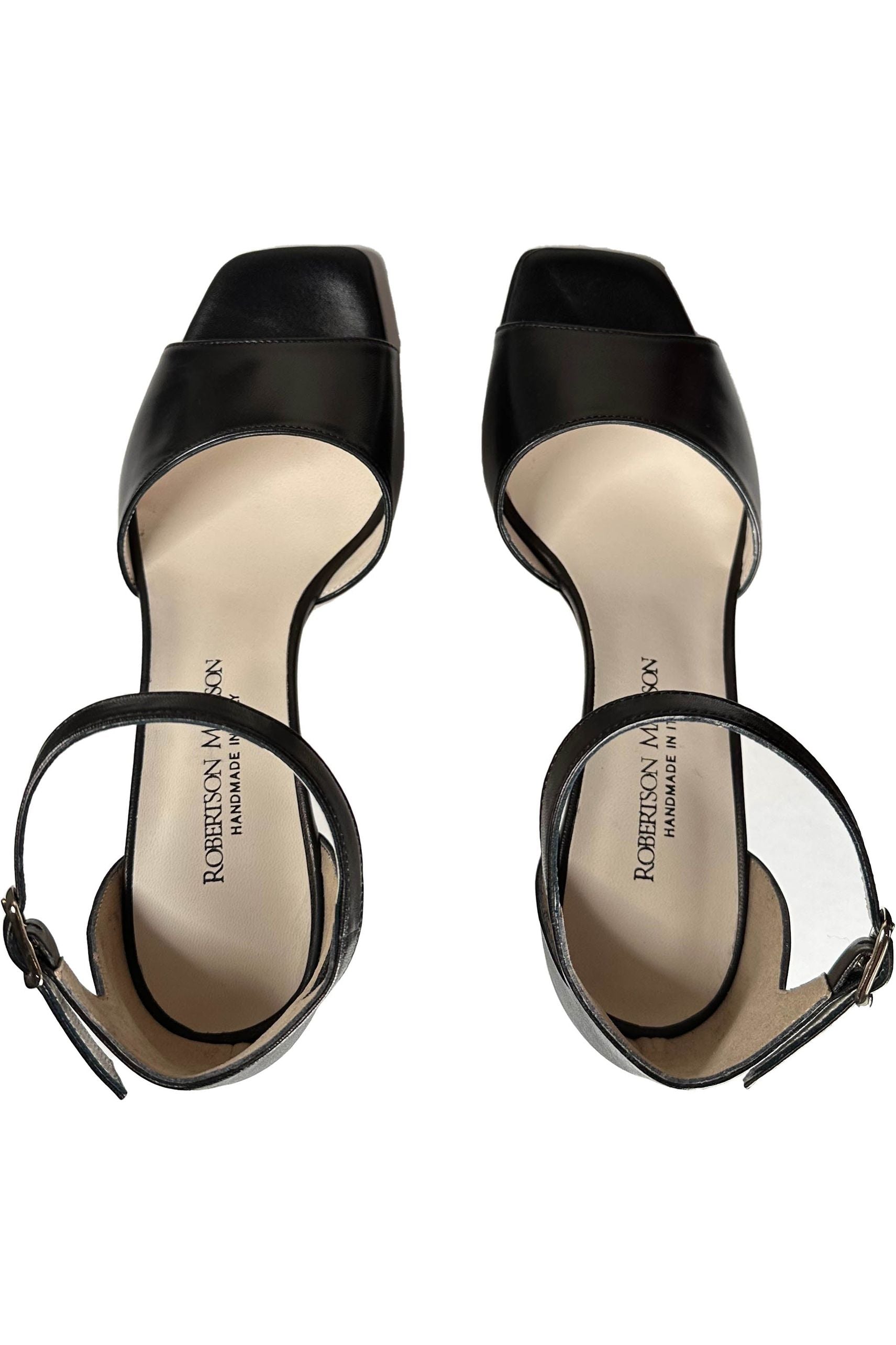 Robertson Madison Rosette 38567 Mid Heel Sandal | Nero Nappa
