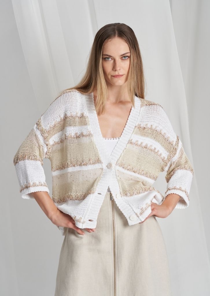 Tricot Chic Button Stitch Cardigan B733 | White/Beige | Clearance Final Sale | Offered Online Only