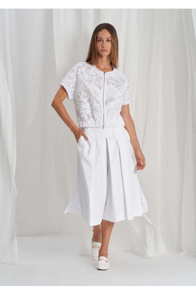 Tricot Chic Short Sleeve Zip Vest B552 | White | Clearance Final Sale | Offered Online Only