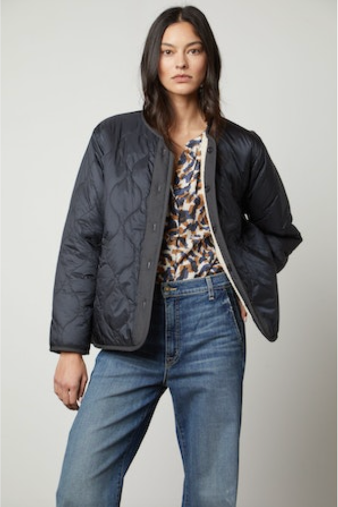 Velvet by Graham & Spencer Marissa 05 Quilted Sherpa Jacket | Navy | Final Call Sale - No Returns | Offered Online Only