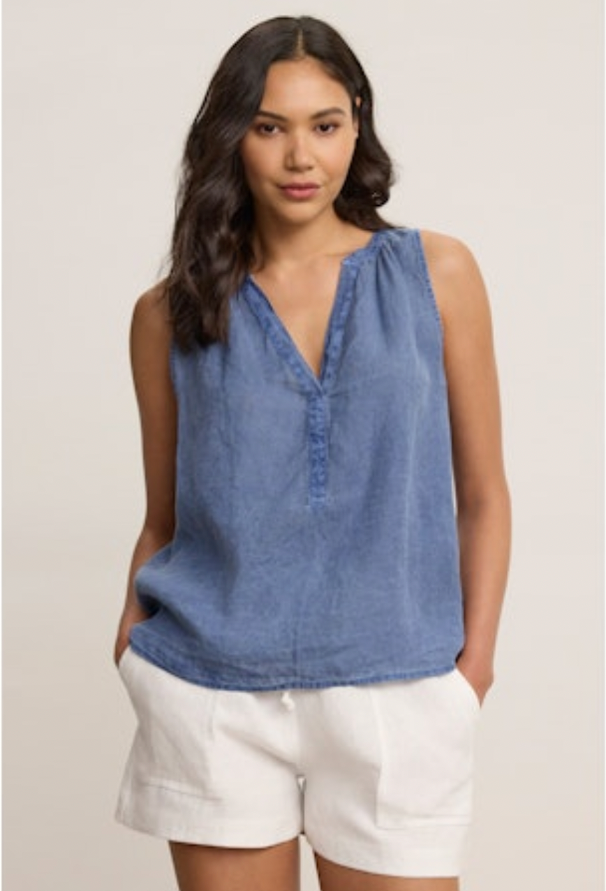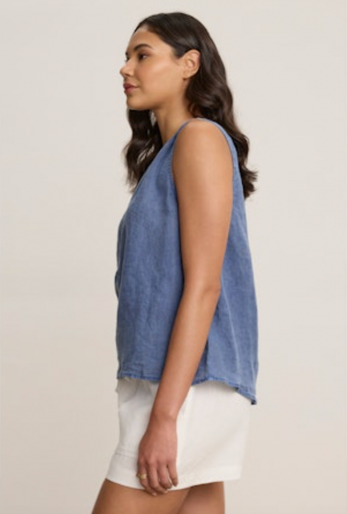 Velvet by Graham & Spencer Tacy06 Sleeveless Woven Linen Top | Indigo | Offered Online Only