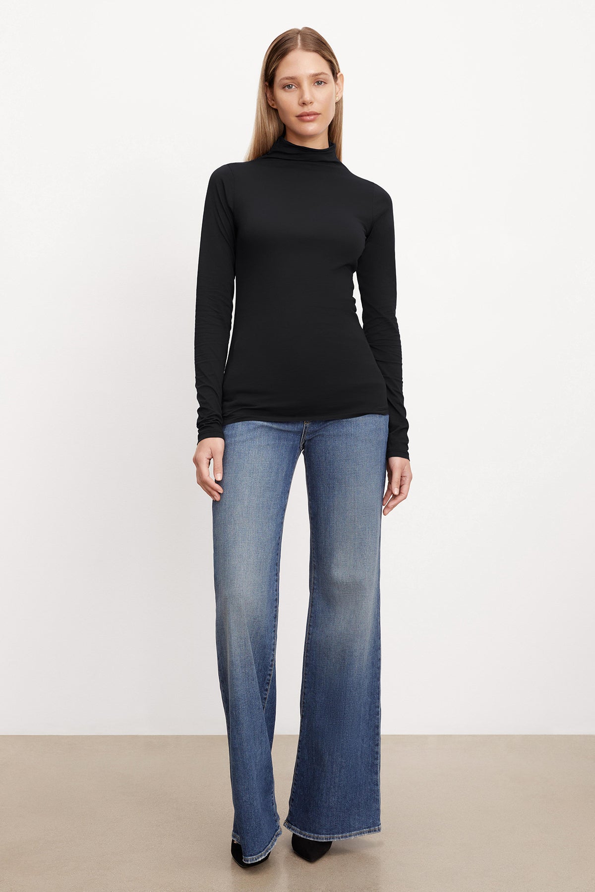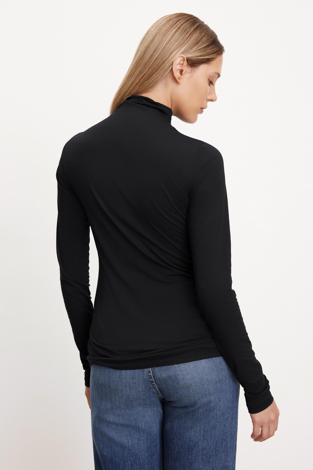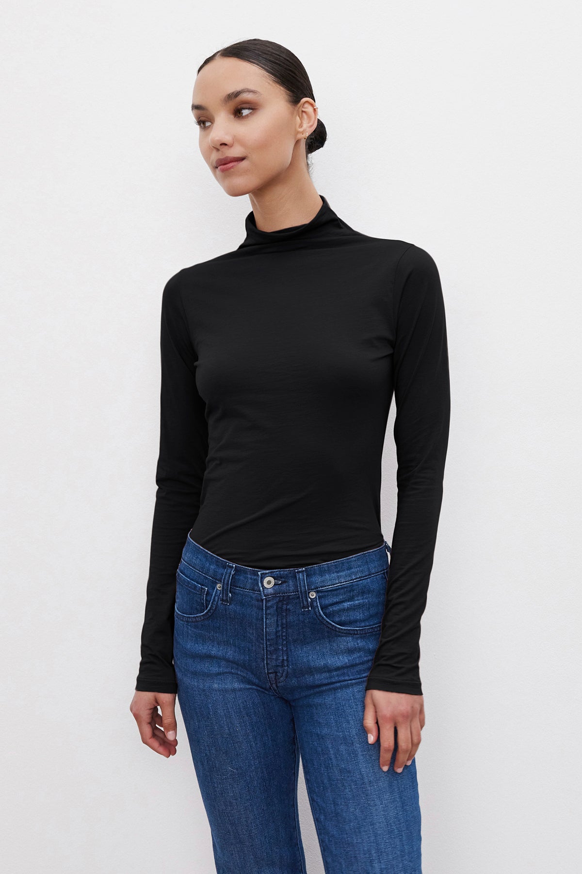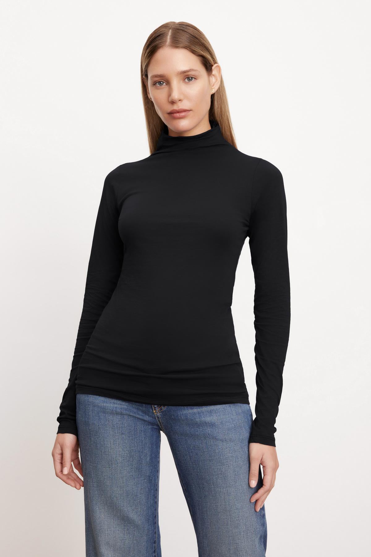 Velvet by Graham & Spencer Talisia Gauzy Whisper Fitted Mock Neck Tee | Black