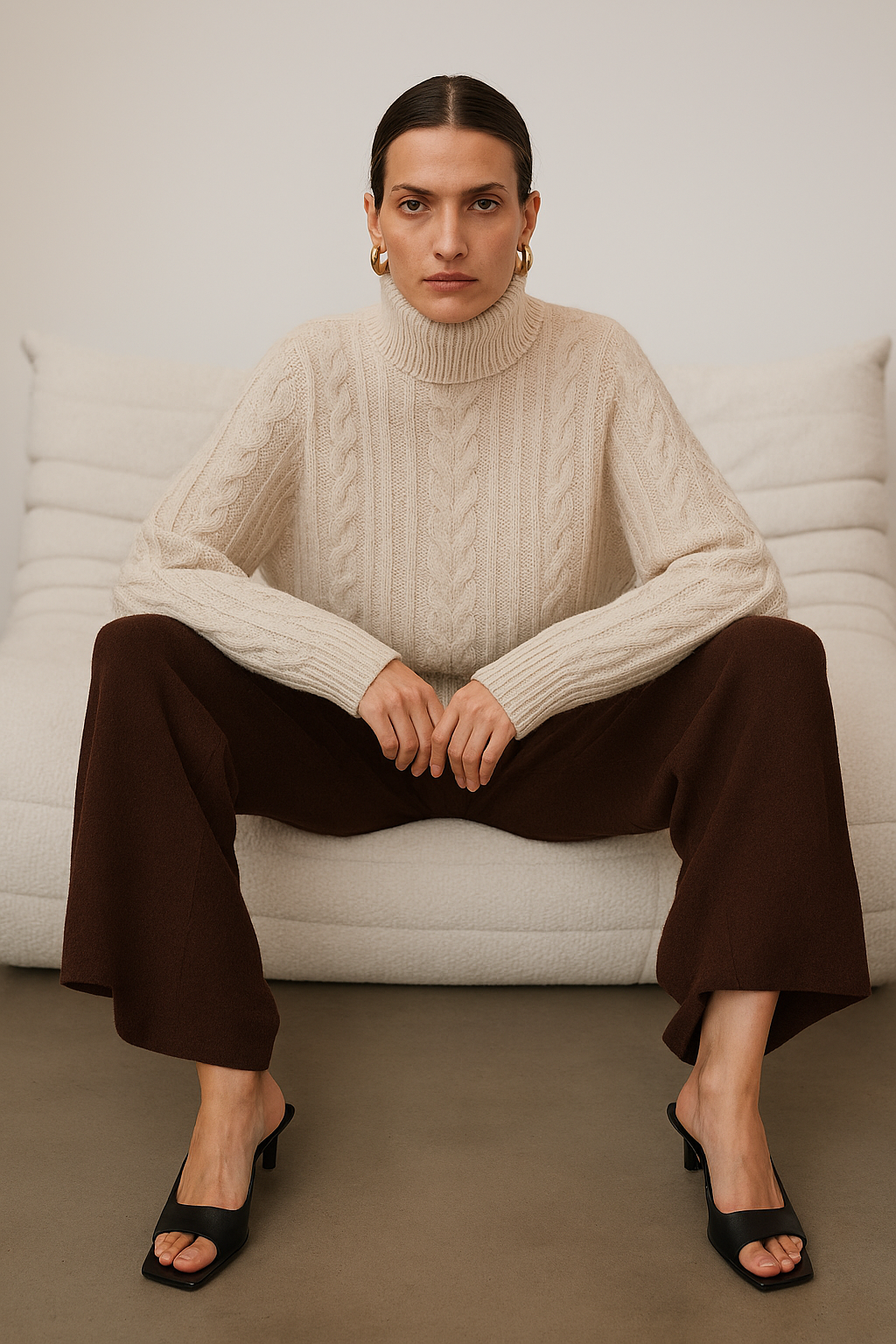 W. Cashmere Juno Cashmere Mock Neck Cable Knit Sweater – Oatmeal | Women's Luxury Cashmere Knitwear